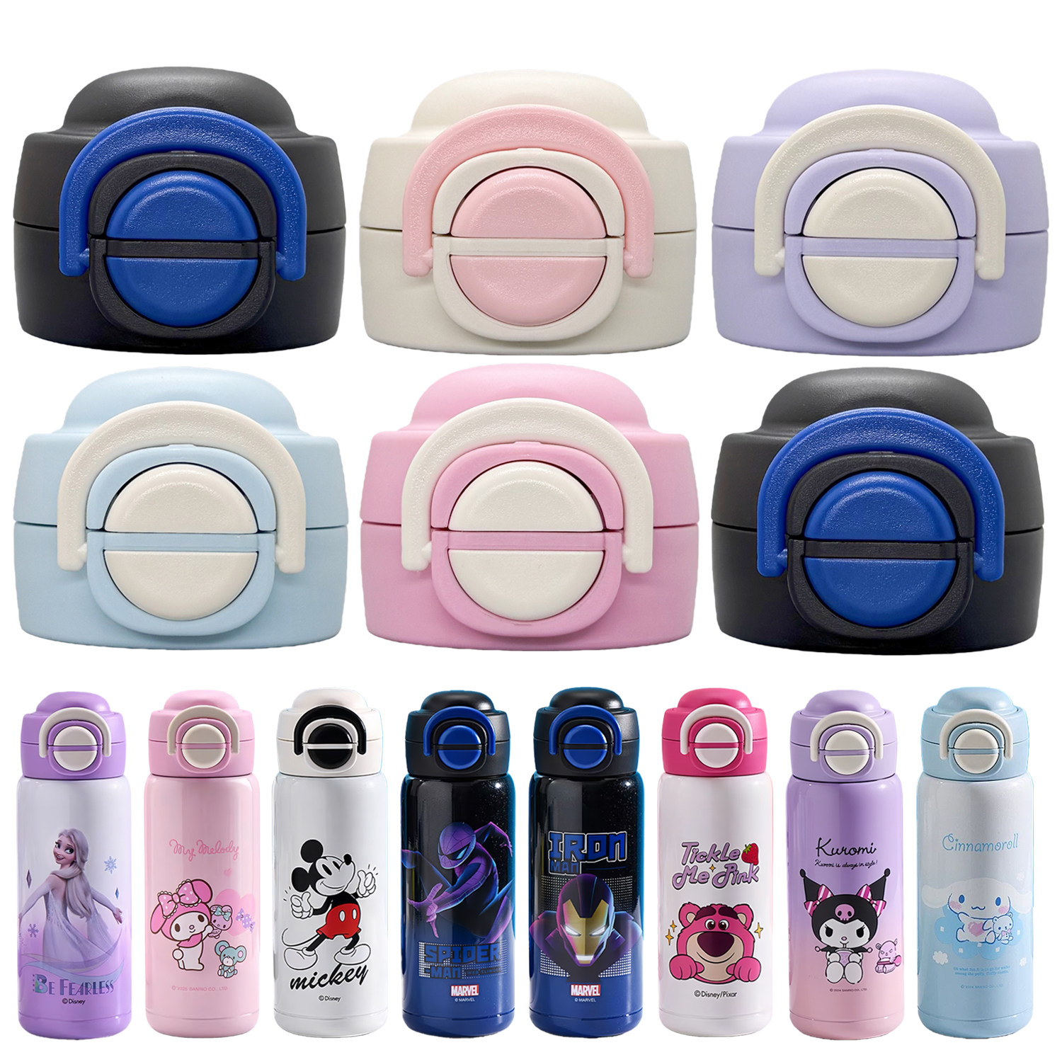 📚 迪士尼儿童保温杯盖双饮盖子配件吸嘴吸管蜘蛛侠草莓熊米奇三丽鸥