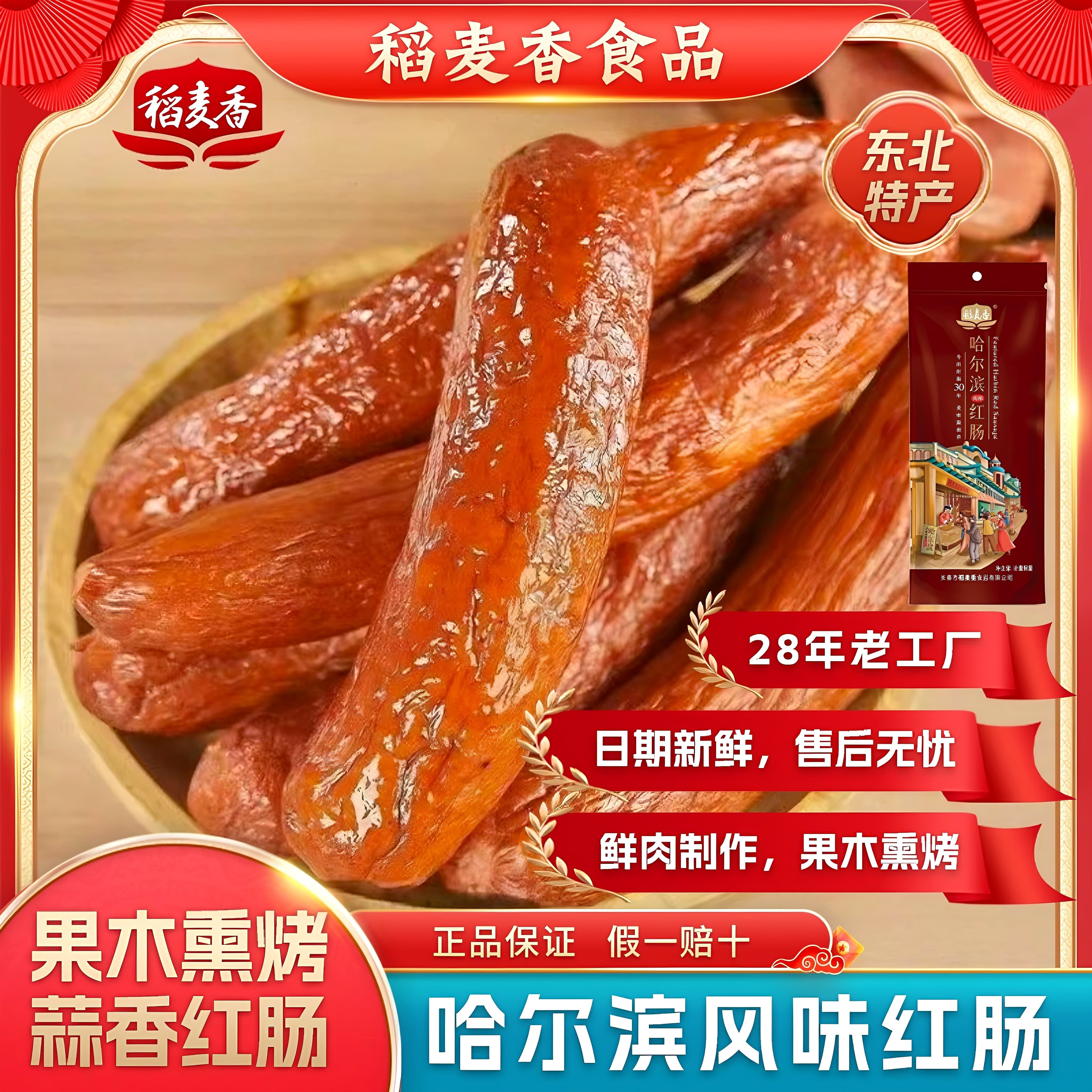 📚 稻麦香哈尔滨风味红肠85g/袋正宗东北特产香肠即食肉肠炒菜下酒菜