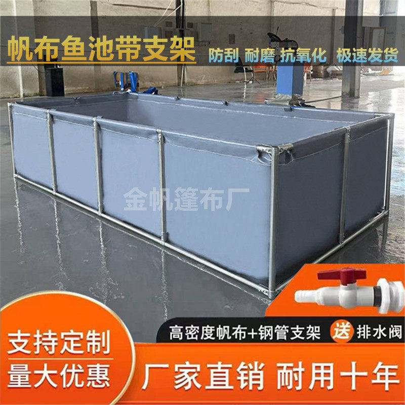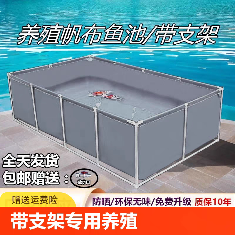 📚 帆布鱼池带支架家用室外可折叠水产专用养鱼帆布蓄水池加厚刀刮布