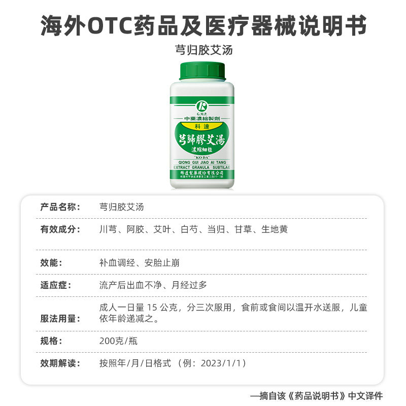 📚 科达制药芎归胶艾汤流产后出血不净月经过多先兆流产习惯性流产