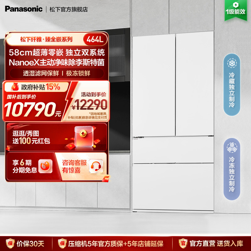 68¥ MF937 K1YmUO0HyEE¥ https://m.tb.cn/h.7w8IqcG 松下官方464L零嵌入式法式多门电冰箱家用一级纳诺怡除菌W472TX --------------------- 【原售价】20,490元 【现售价】17,375元。