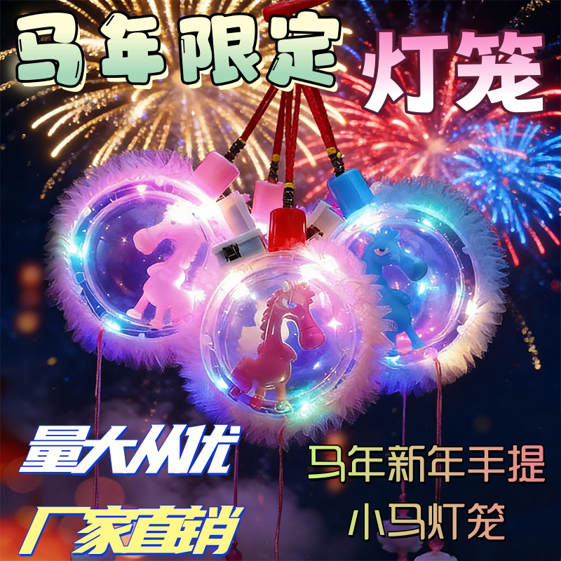 📚 2026年马年灯笼儿童手提发光玩具小马夜市花灯批发摆摊儿童幼儿园