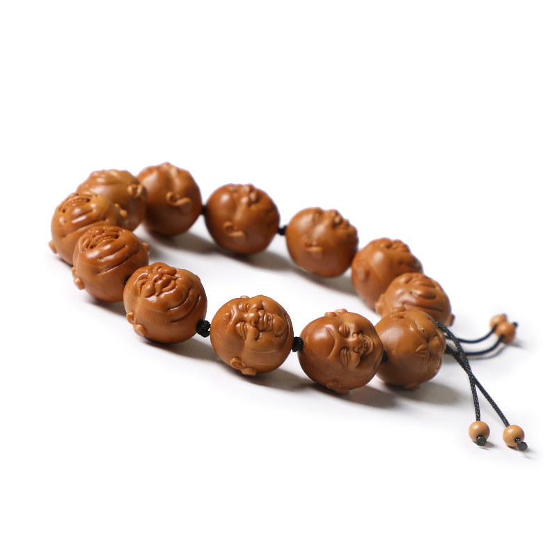 📚 橄榄核雕刻十分开心弥勒佛手串老油核手工雕刻人生百态文玩手串链