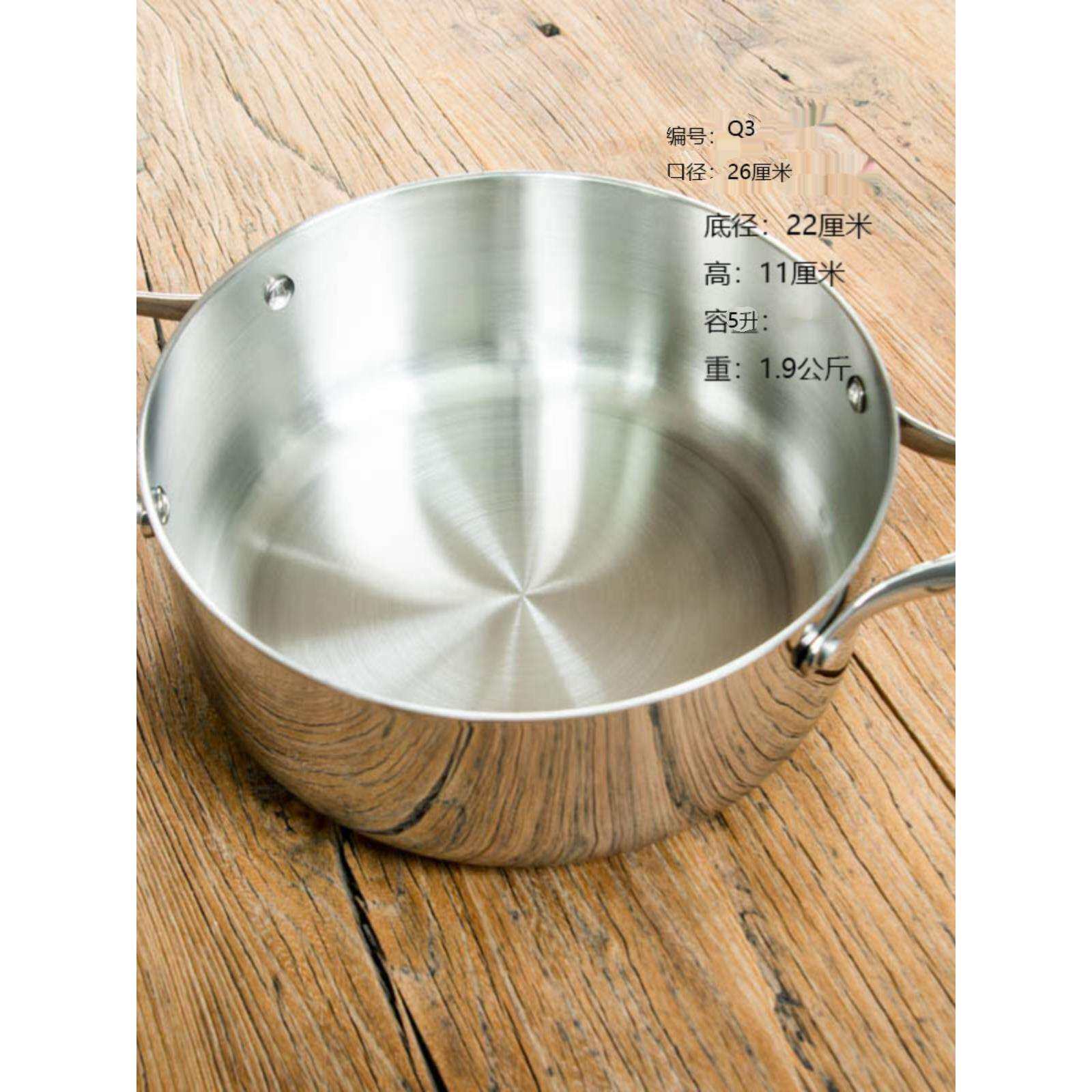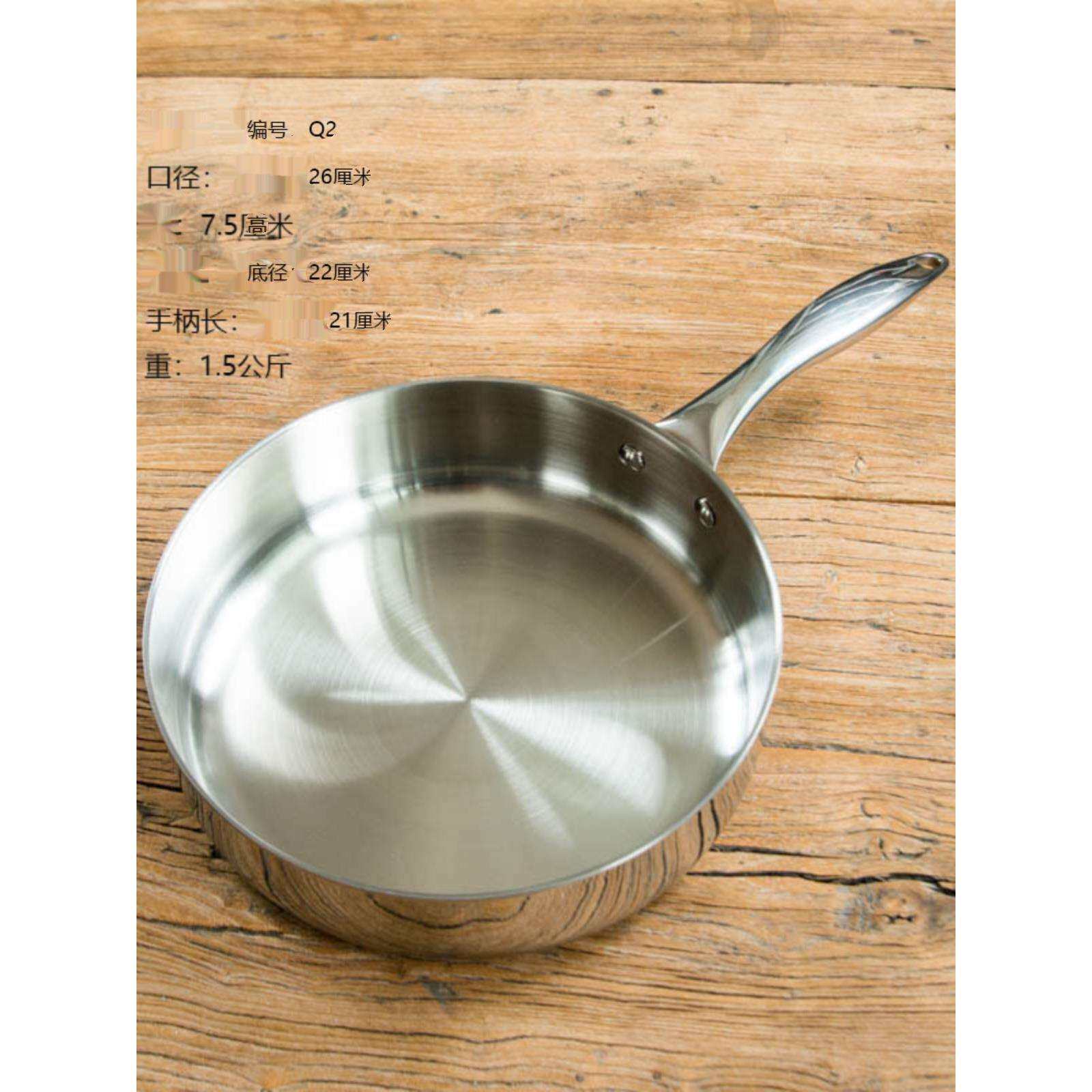 📚 很好用出口尾货316不锈钢平底煎锅双耳汤锅5L 五层钢一体成型26cm
