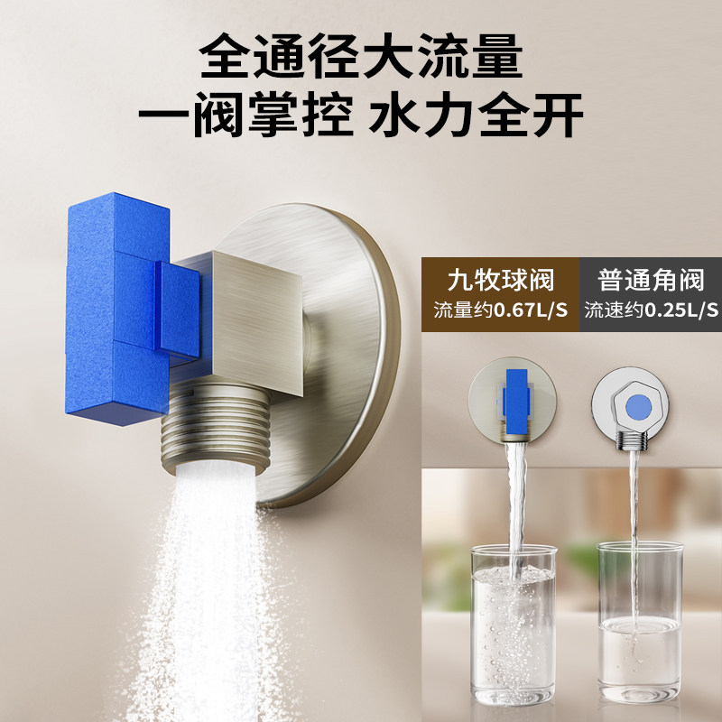 📚 九牧球芯角阀全铜大流量球阀燃气热水器专用冷热水三角阀开关