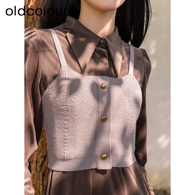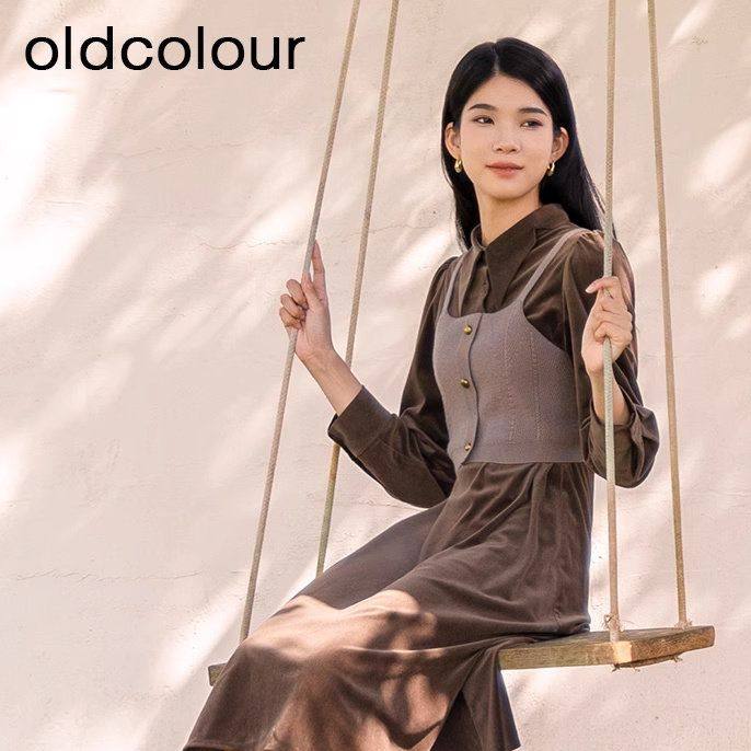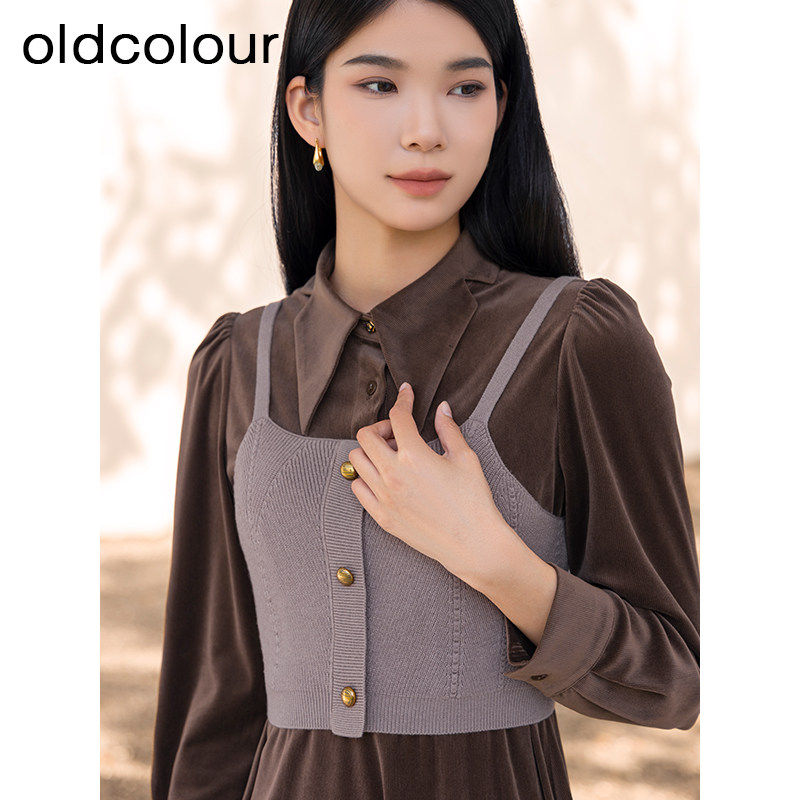 📚 oldcolour复古时尚气质茶歇假两件长袖连衣裙女BQ421009A1