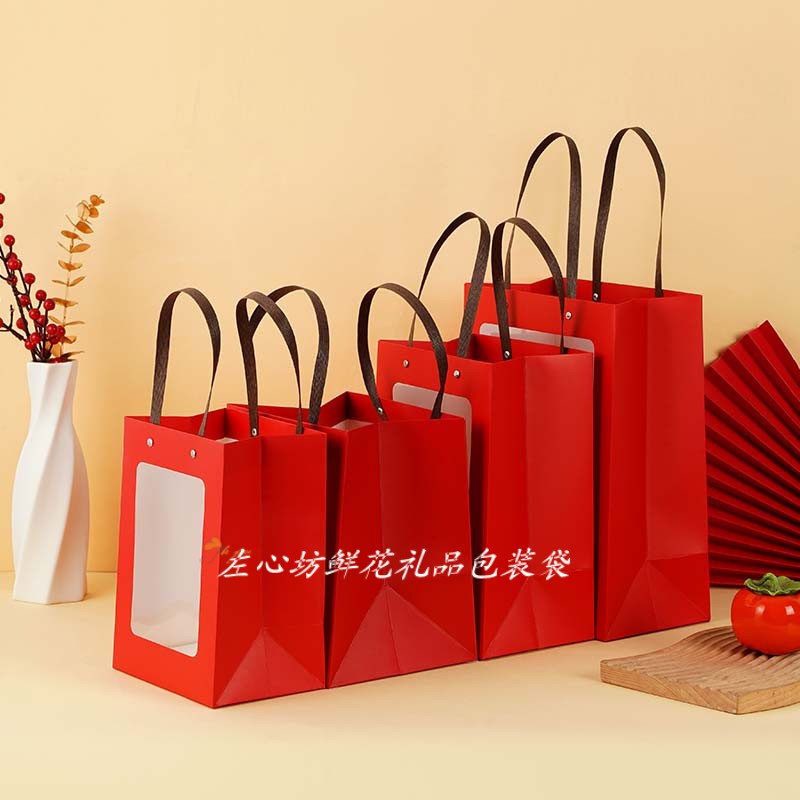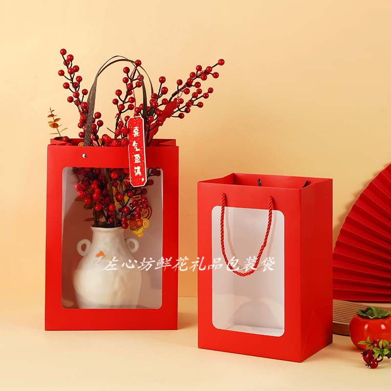 📚 新年礼盒包装袋红色橱窗袋春节礼品包装圣诞礼物袋水果花束手提袋