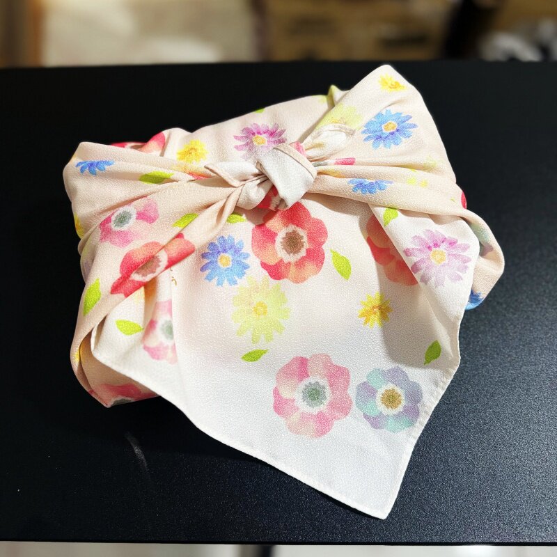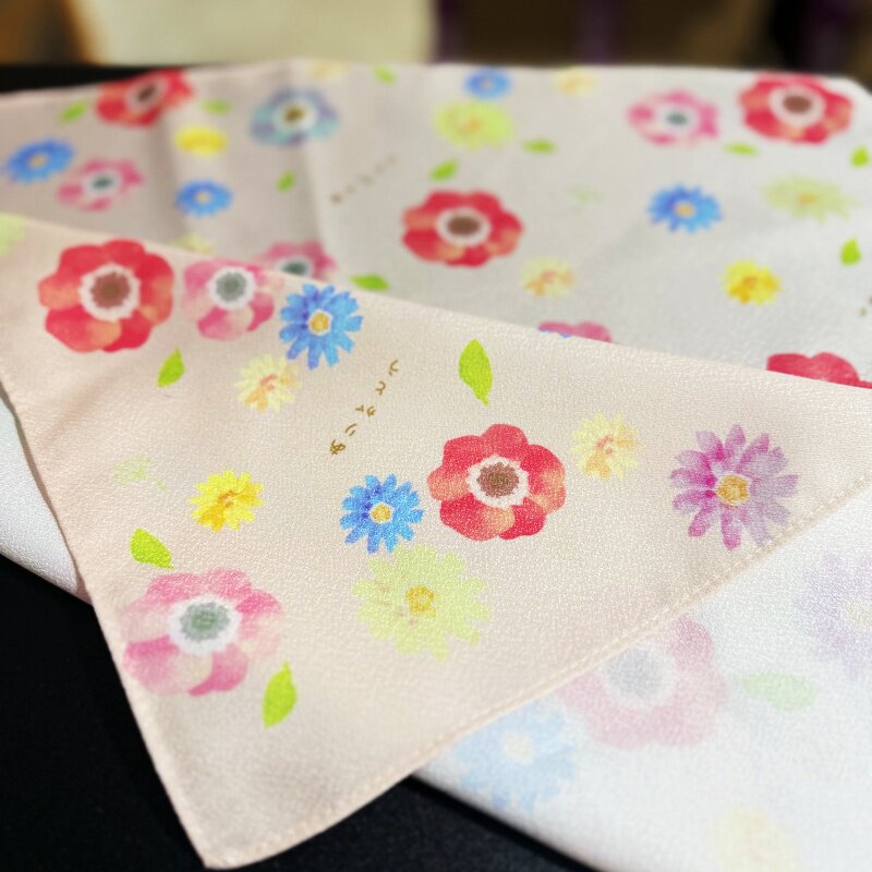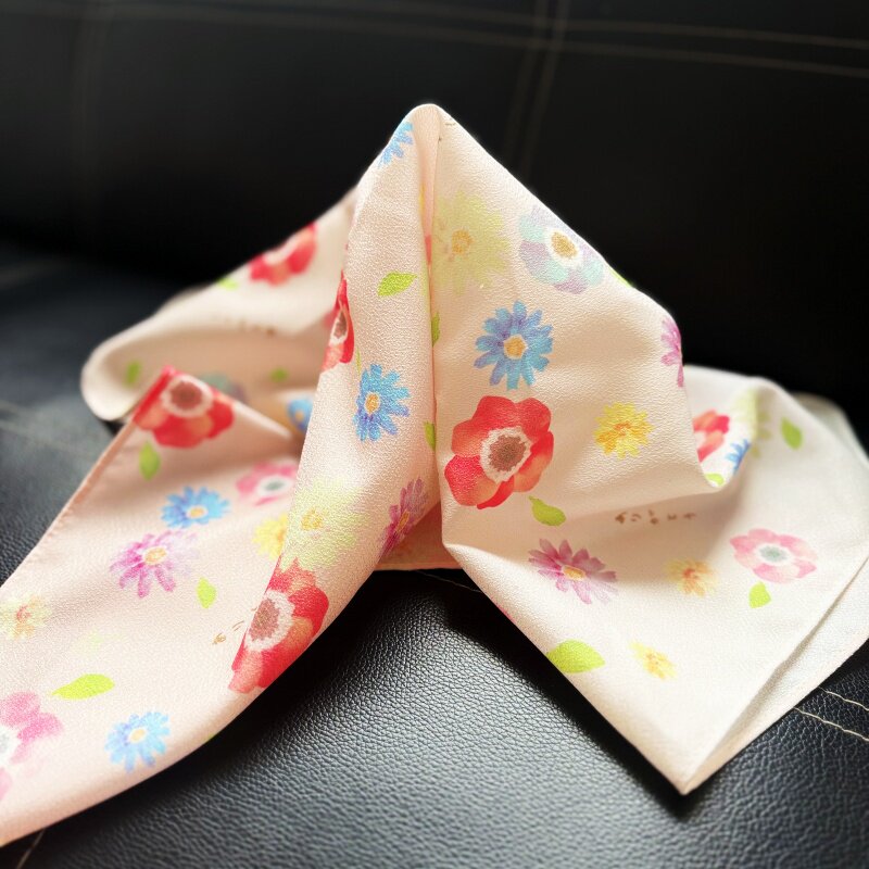 📚 出口日本原单绉布昭和风肉粉色小花方巾盖巾包裹巾 尺寸55*55