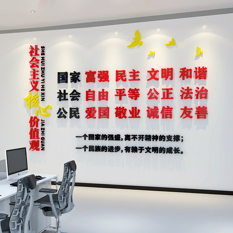 📚 党建文化墙社会主义核心价值观墙贴办公室大厅楼梯墙面装饰3d墙贴