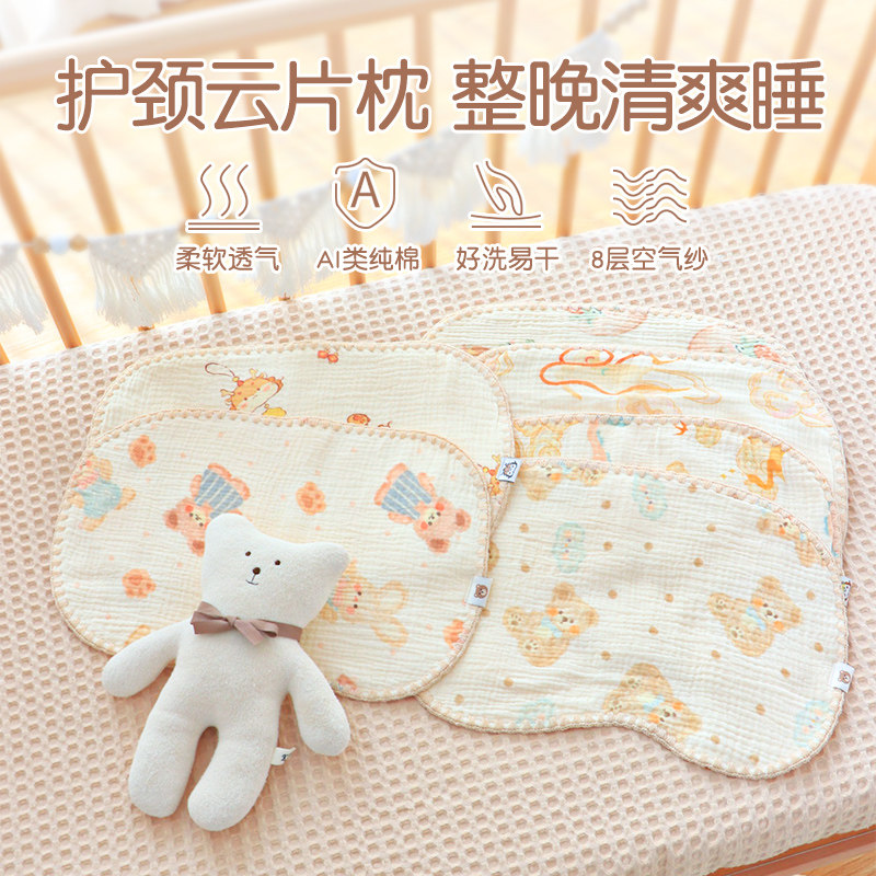 📚 婴儿云片枕纯棉纱布平枕初生宝宝枕头夏季透气吸汗新生儿枕垫巾
