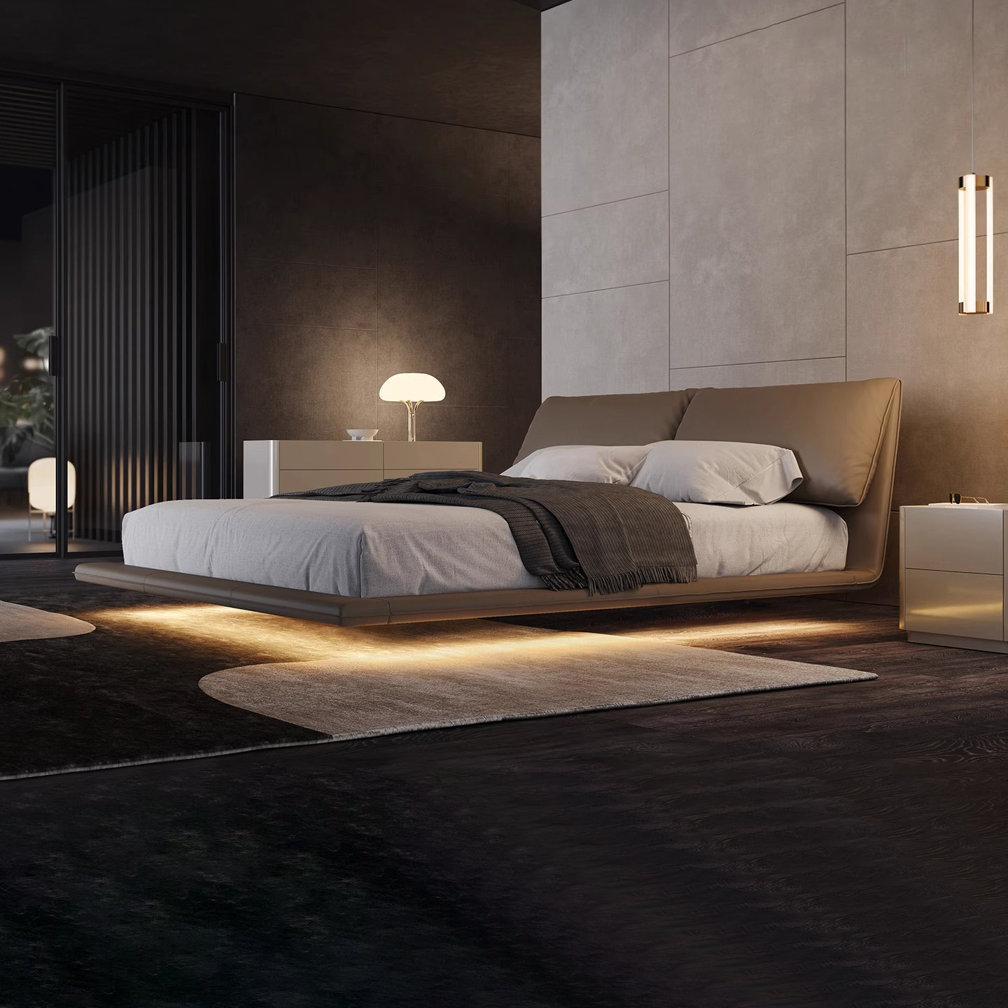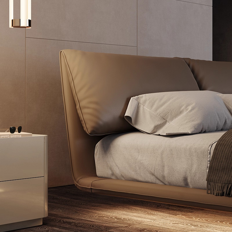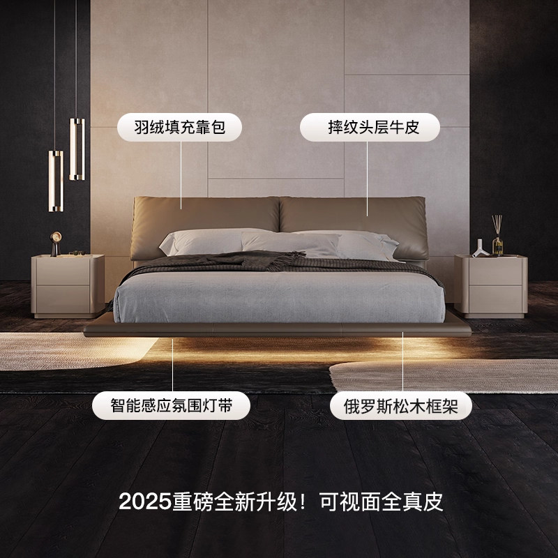 📚 大象耳朵床轻奢风高级意式极简软包悬浮真皮主卧双人2米x2米2大床