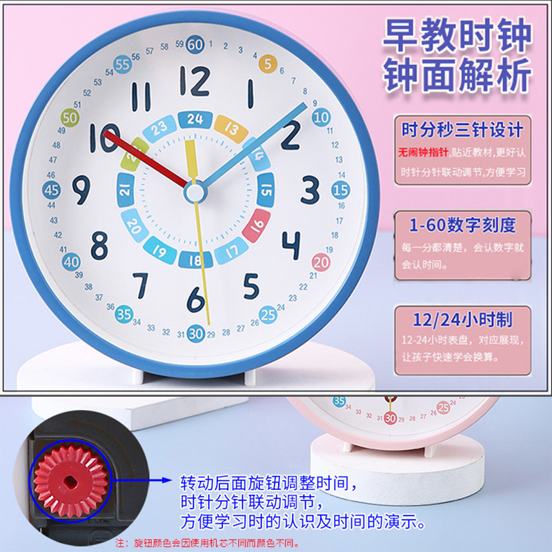 📚 早教款小台钟学生用时钟表静音书桌面摆件手动调节时间认识教学具