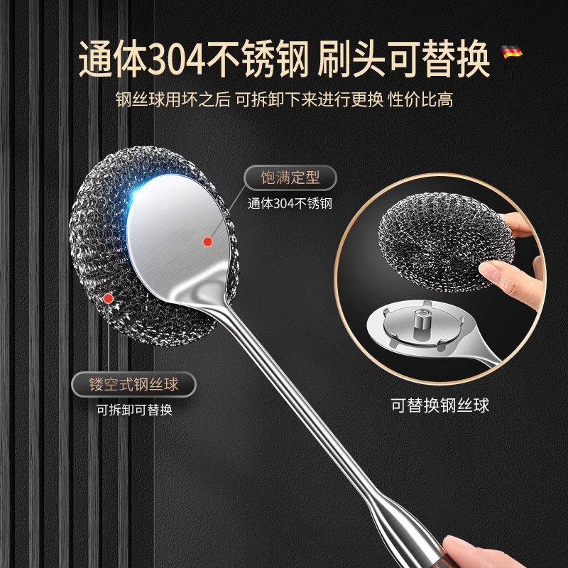📚 304不锈钢锅刷厨房专用不伤锅刷锅神器长柄洗锅刷钢丝球清洁刷子