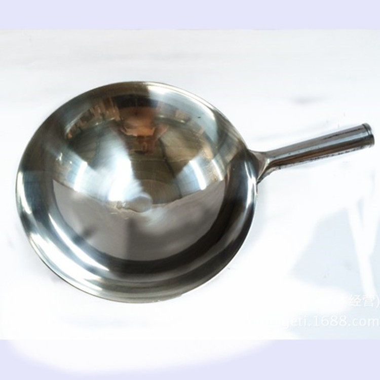 📚 厂家供应32-38cm不锈铁炒锅家用酒店无涂层自粘锅连体炒勺