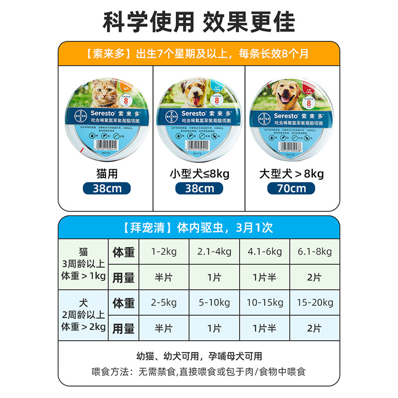 📚 拜耳索来多体外驱虫项圈宠物猫咪狗狗除跳蚤虱子防蚤去虱圈索莱多