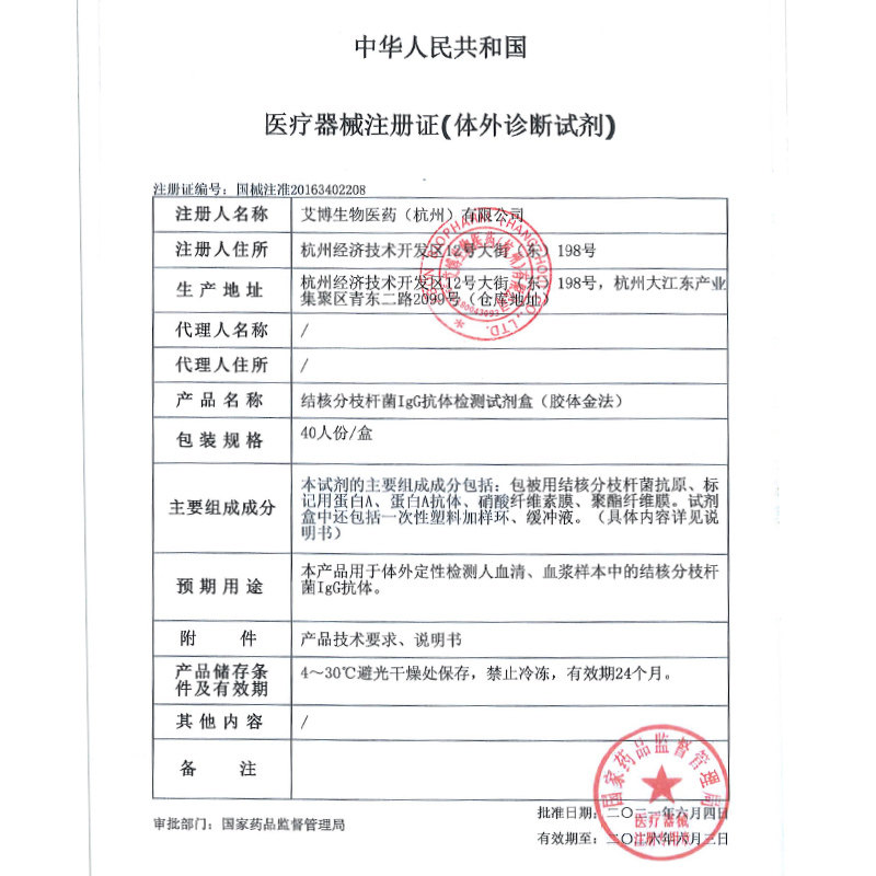 📚 艾博结核分枝杆菌IgG抗体检测试剂盒查肺结核病TB测试纸卡40人份