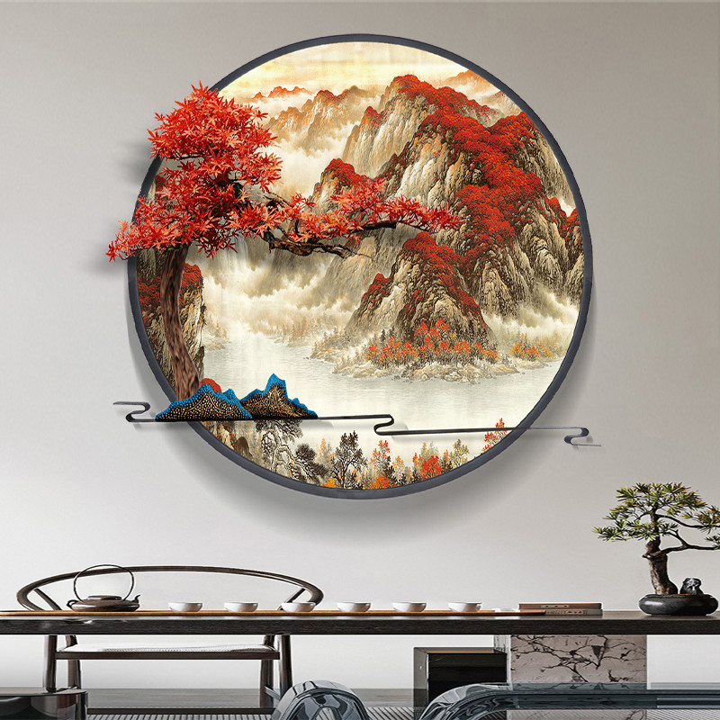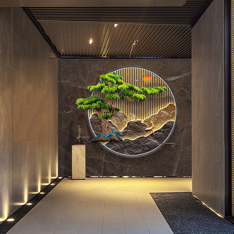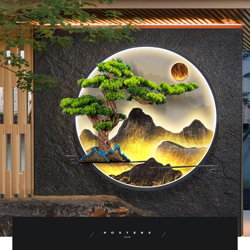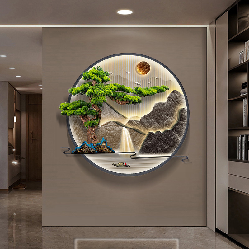 📚 户外防水创意新中式庭院园林花园影壁墙装饰画山水壁挂圆形灯光画
