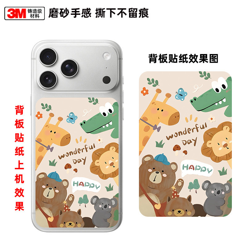 📚 适用于iphone17promax/17pro背板贴纸卡通个性彩膜3m磨砂卡通贴膜保护膜贴彩膜可定制苹果17pro后盖背膜