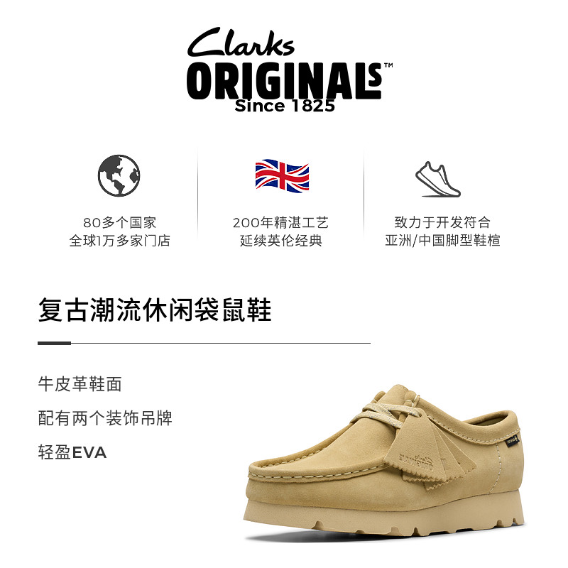 📚 Clarks其乐Originals Wallabee系列女鞋新品防泼水复古休闲袋鼠鞋
