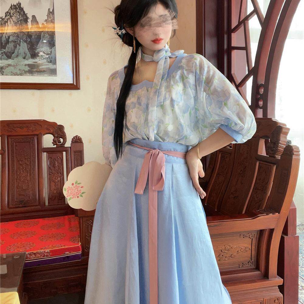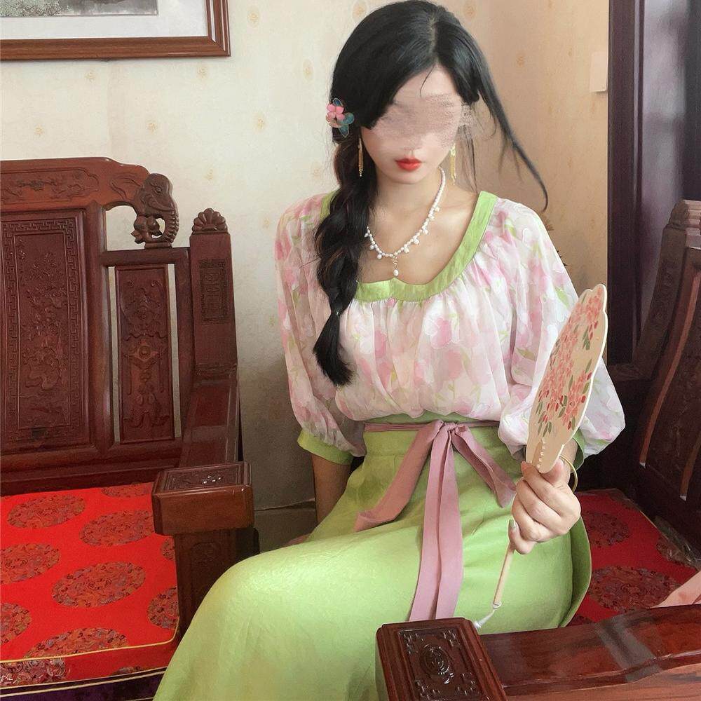 📚 十里七巷 逢花时 鸡心领汉元素唐制短衫八破裙汉服日常显瘦