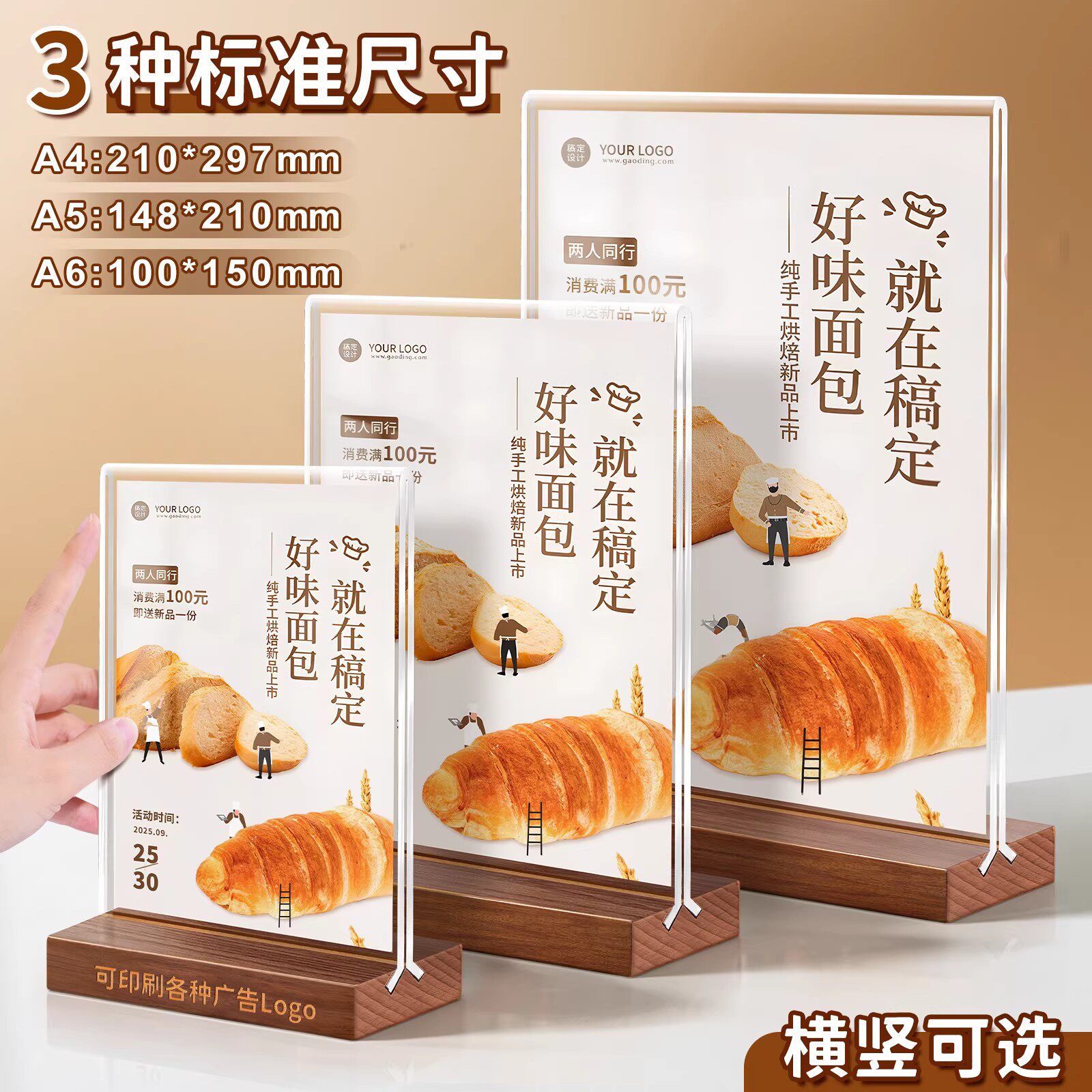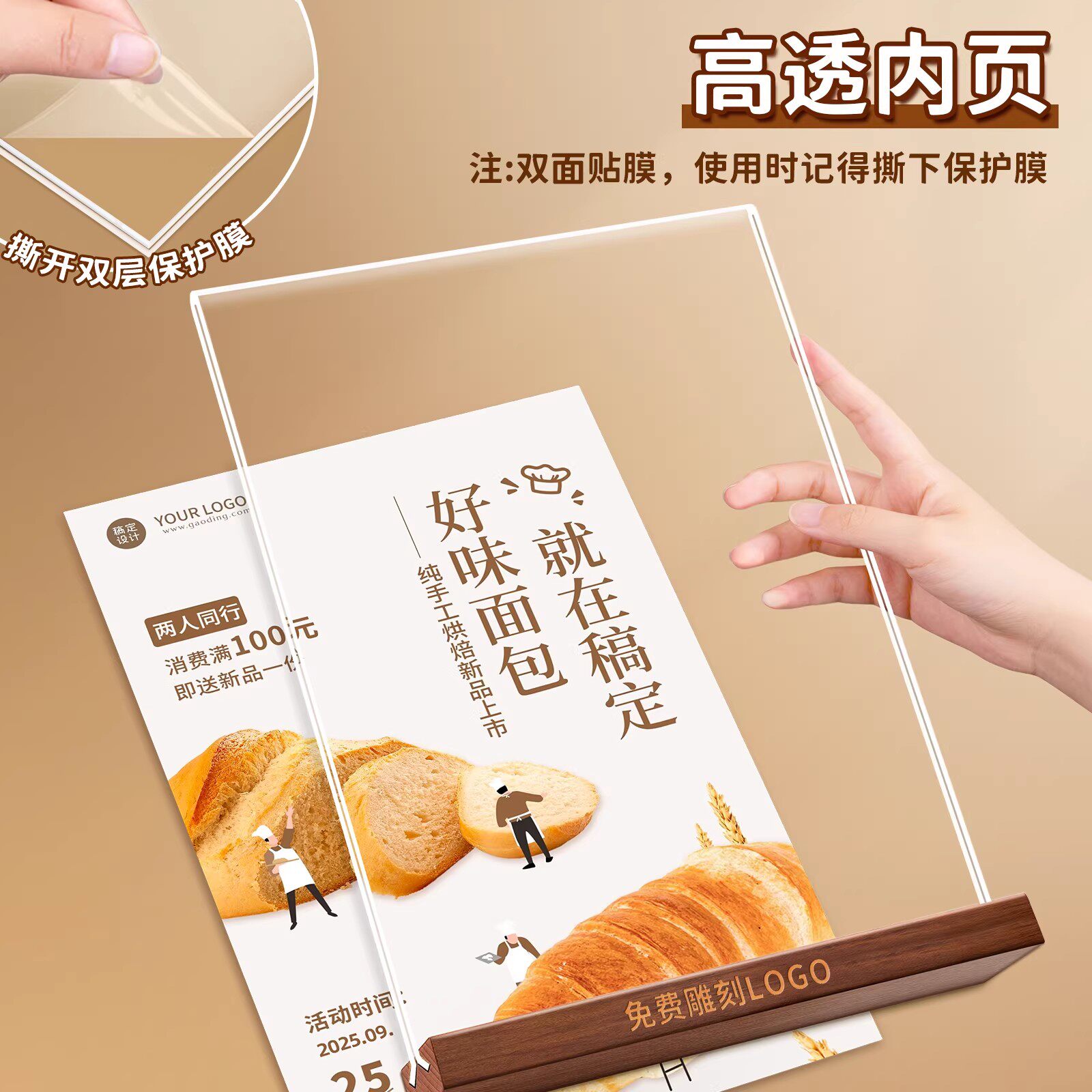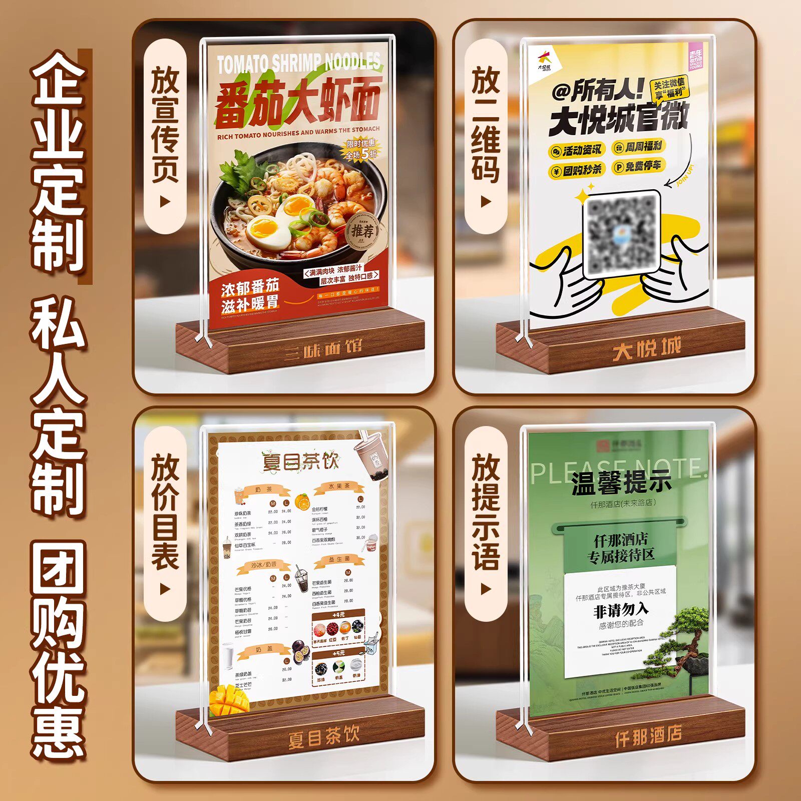 📚 亚克力水晶透明立牌木质桌牌a4菜单展示牌a5双面台卡价格表价目表定制桌面展示架广告牌点餐牌酒水茶水单设计