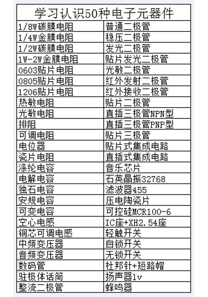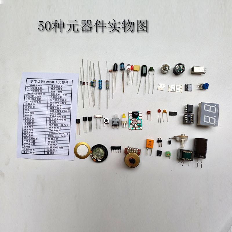 📚 电子元器件学习认识50种实用元件电子套件DIY散件分立贴片元器件
