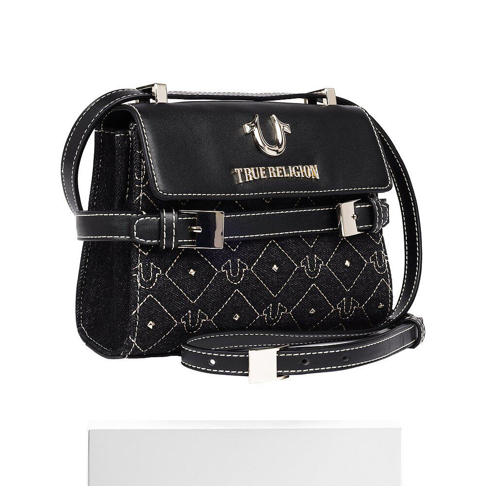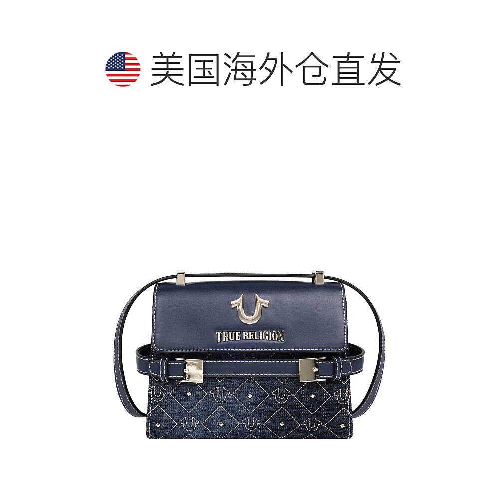 📚 自营True Religion Studded Denim Flap Crossbody Bag - dark de