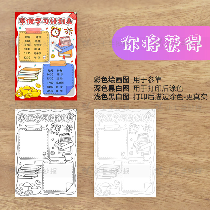 📚 寒假学习计划表手抄报模板小学生假期学习生活作息时间安排竖