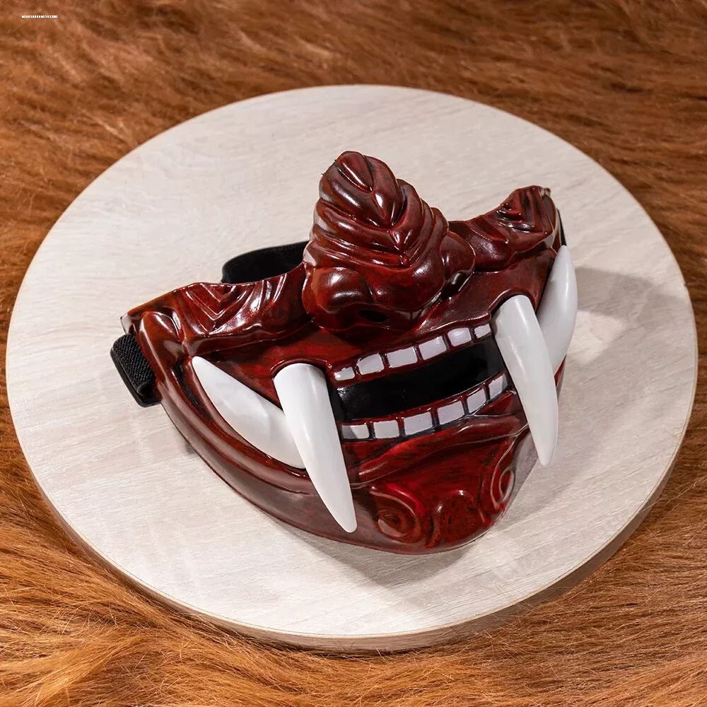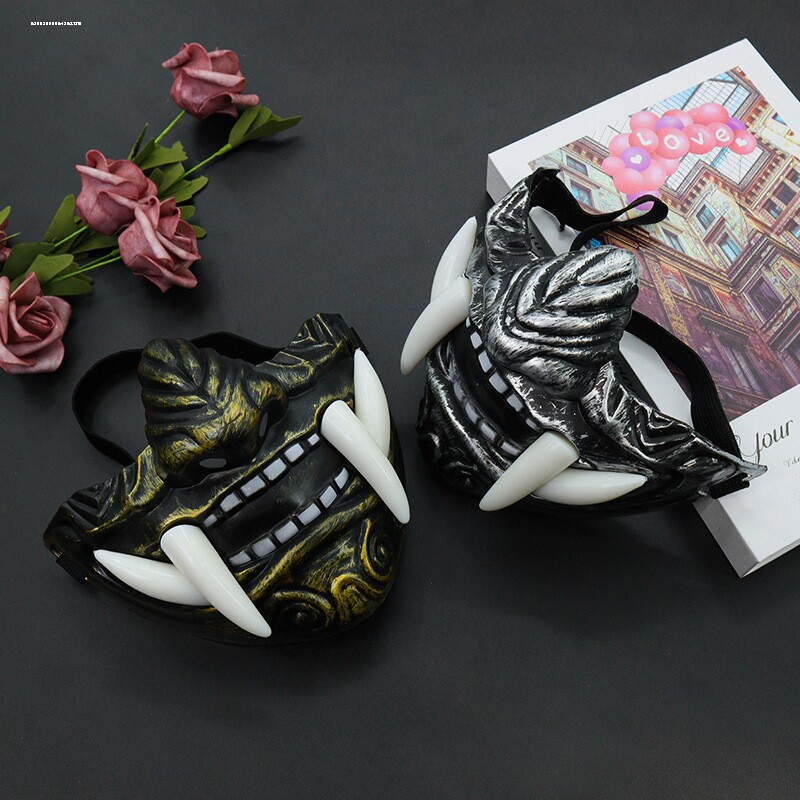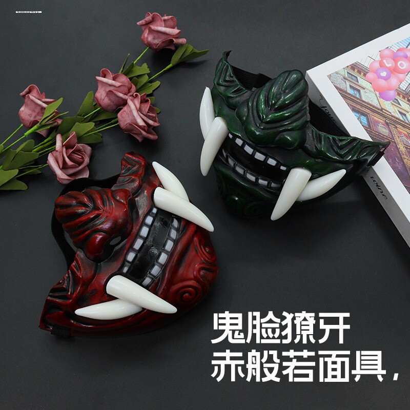 📚 万圣节獠牙半脸面具漫展派对鬼屋恐怖cos面具暗黑武士赤般若面罩