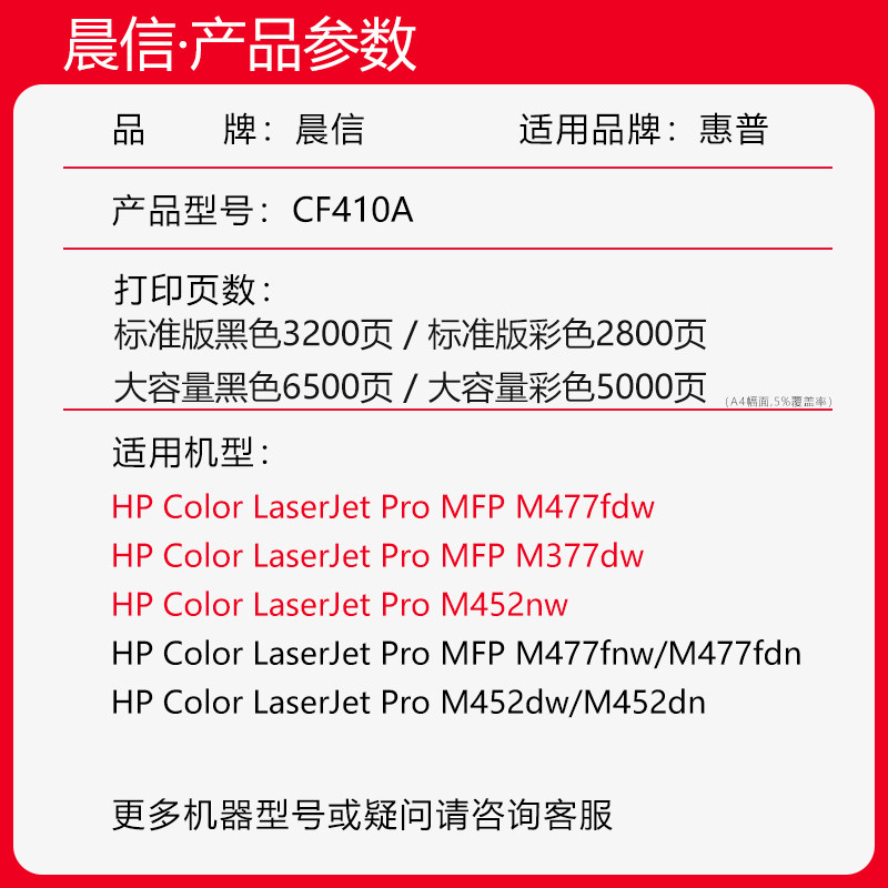 📚 适用惠普M477fdw硒鼓M377dw CF410A墨盒M452nw M477dw彩色碳粉M452dw/dn M477fnw打印机粉盒MFP HP410A晒鼓