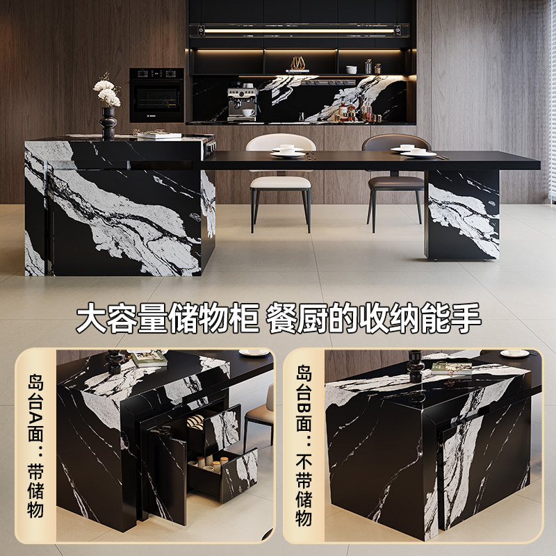 📚 2026新款岩板岛台餐桌一体家用可伸缩厨房中导台小红书款高端定制