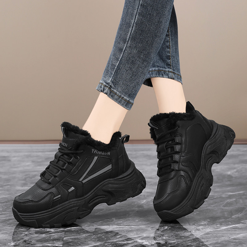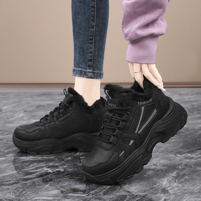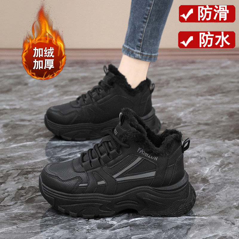 📚 大棉鞋女款冬季黑色加绒老爹鞋皮面防水厨房工作鞋大码高帮运动鞋