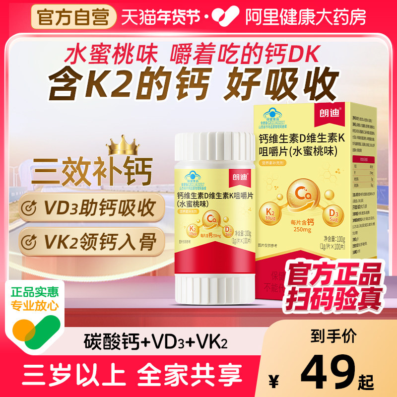 📚 朗迪钙DK维生素D3K2咀嚼片成人中老年官方正品100片男女性补钙片