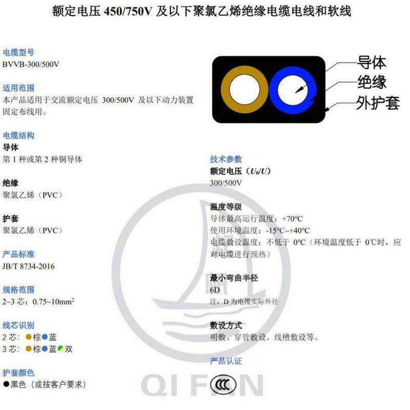 📚 起帆铜芯电线BVVB2*1.5/2.5/4平方家装扁平硬护套线电线