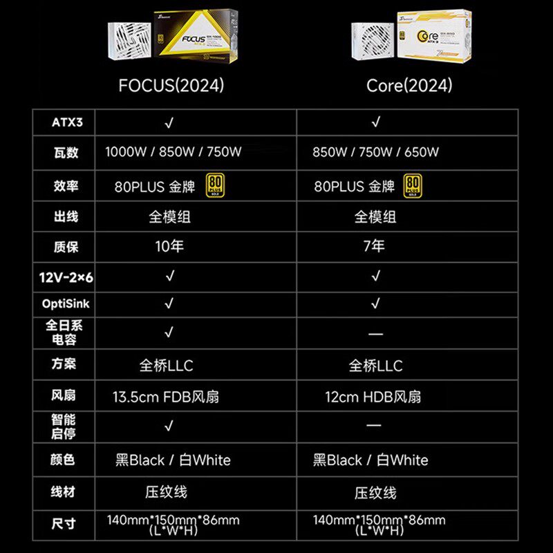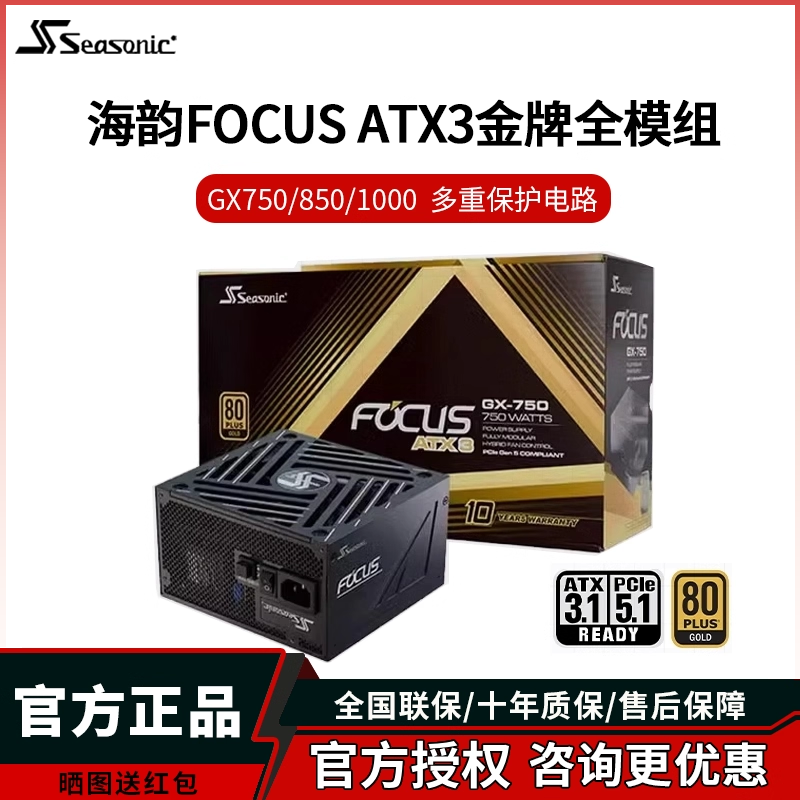 📚 海韵电源FOCUS GX750/1000W金牌全模组台式机电脑850W主机电源ATX