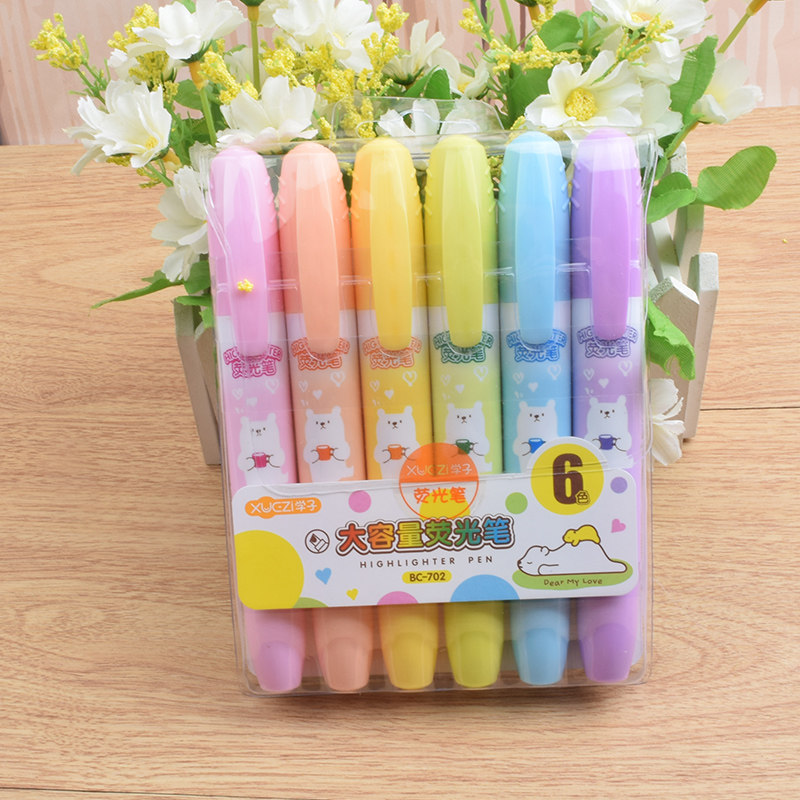 📚 学子学生专用大容量6色办公大号荧光笔标记笔重点笔记号笔彩色笔