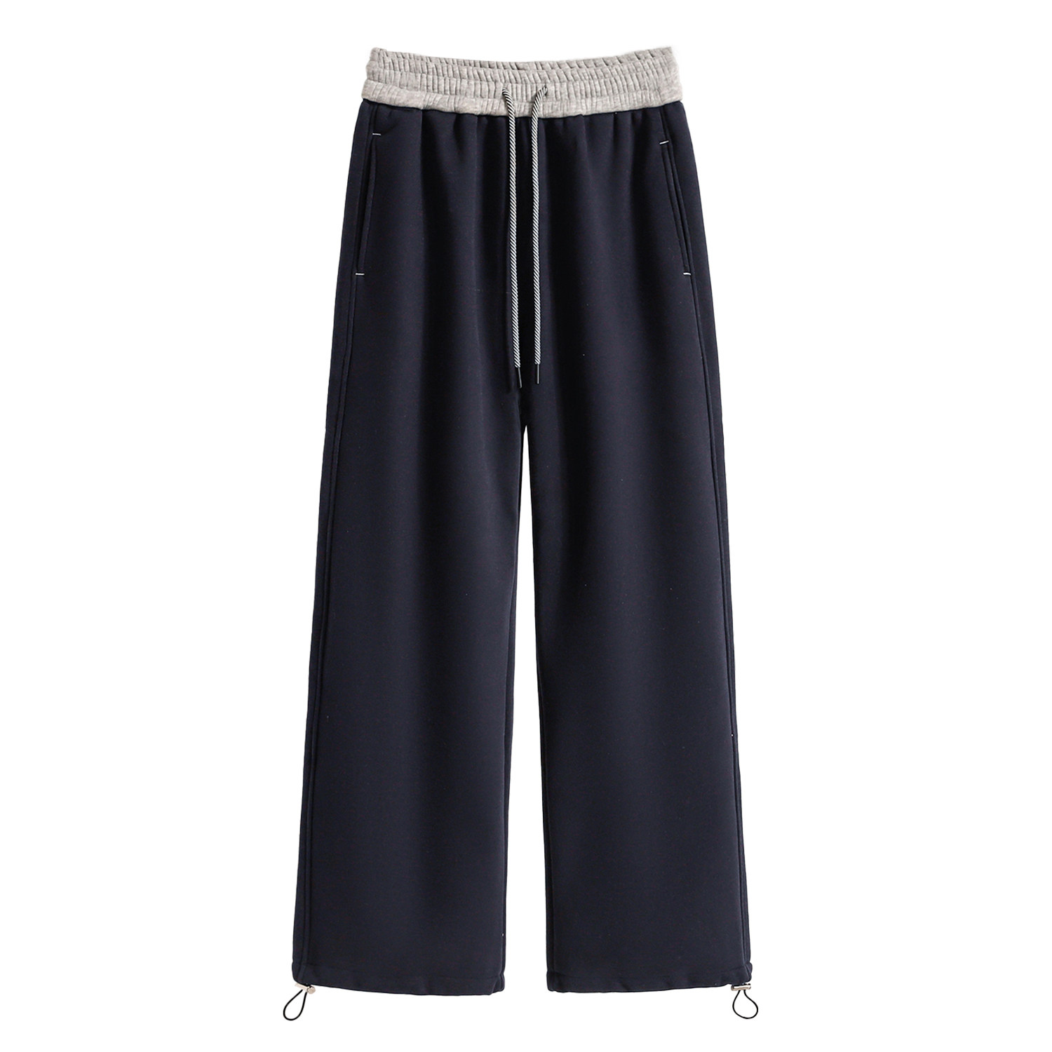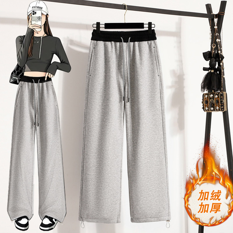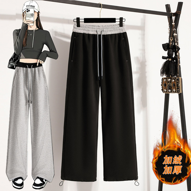 📚 山东即墨加绒加厚纯棉运动卫裤女秋冬宽松直筒撞色阔腿弯刀休闲裤