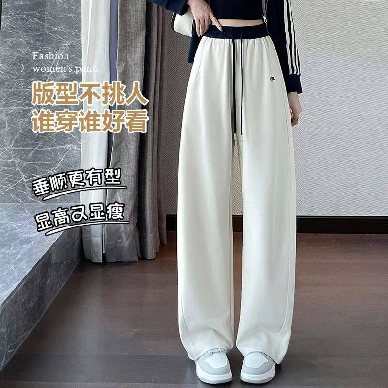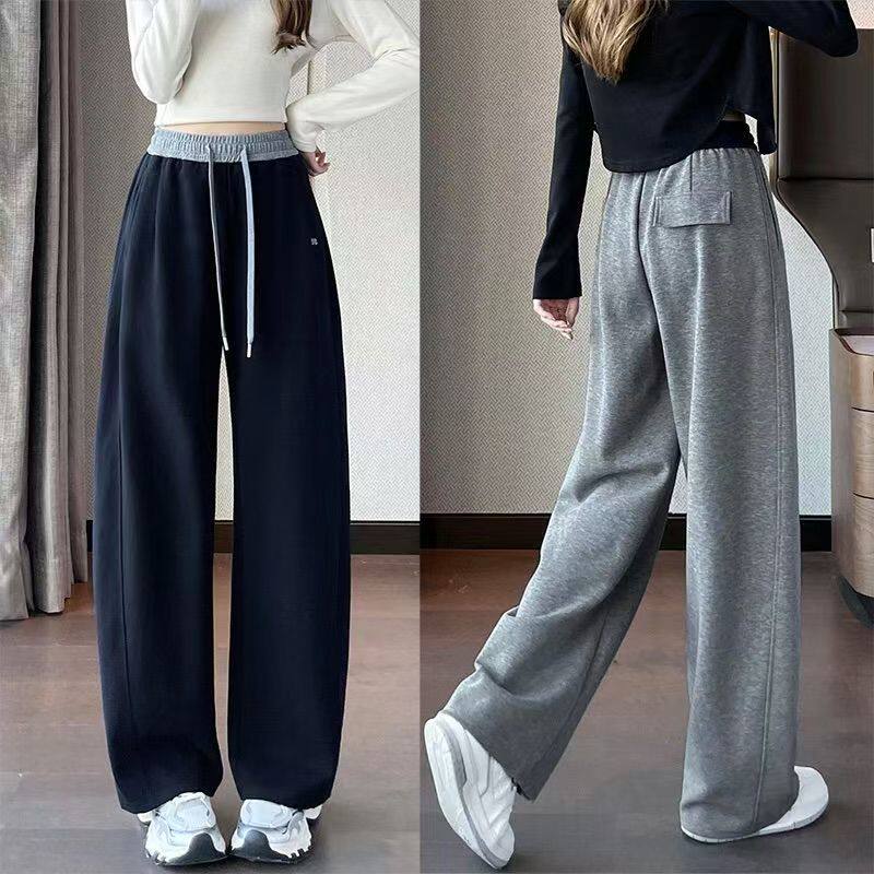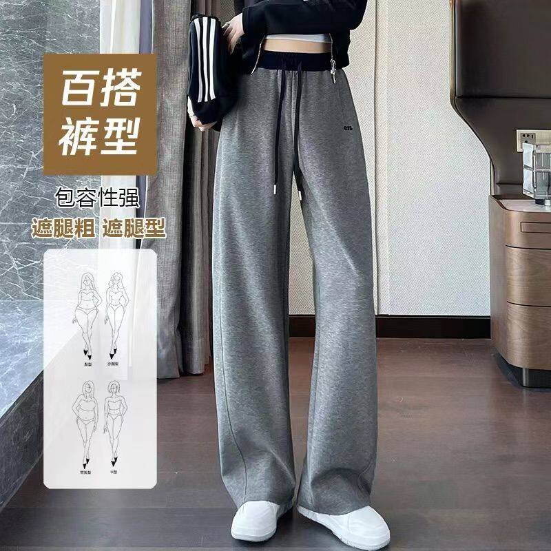 📚 纯棉灰色阔腿卫裤女2025秋冬新款高腰显瘦加绒直筒香蕉弯刀运动裤
