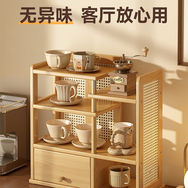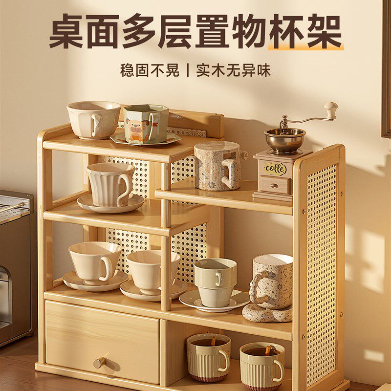 📚 桌面置物架客厅咖啡机旁餐桌上杯子茶具高级感收纳架实木多层小型