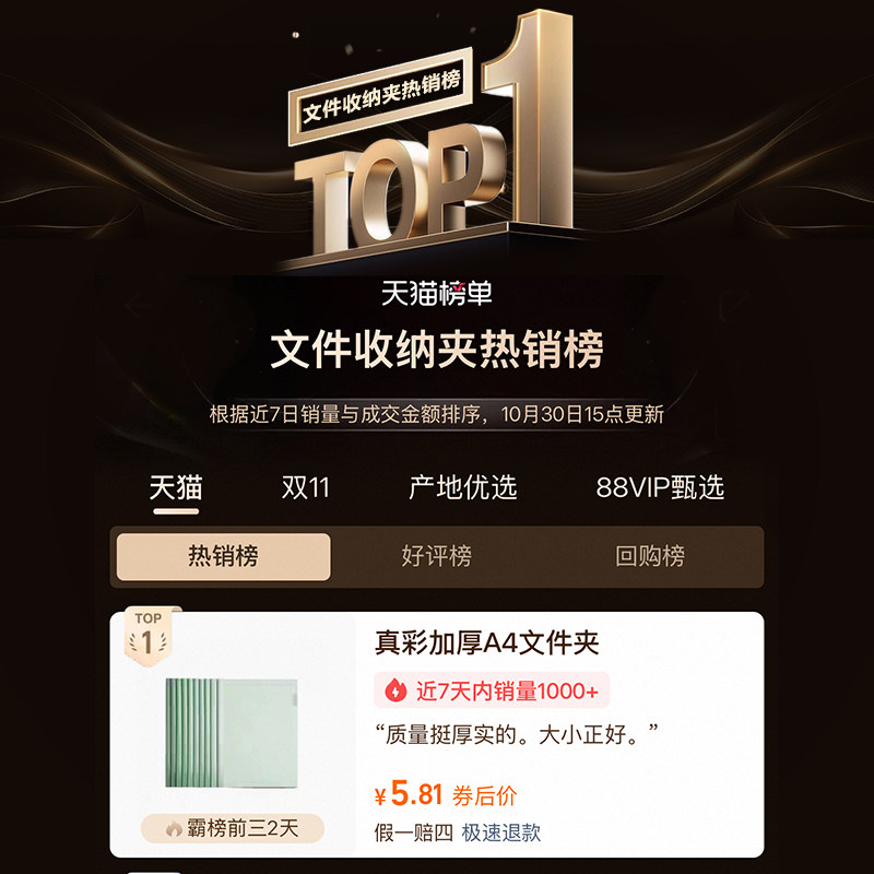 #真彩抽杆夹 #A4加厚文件夹 #办公用品 #学生党必备 #券后价6.9元