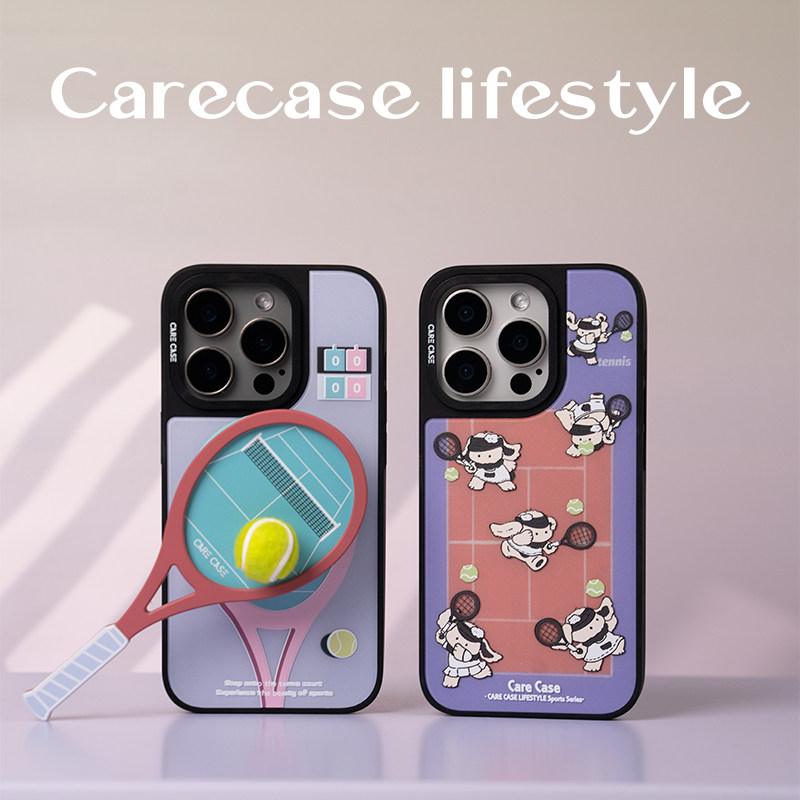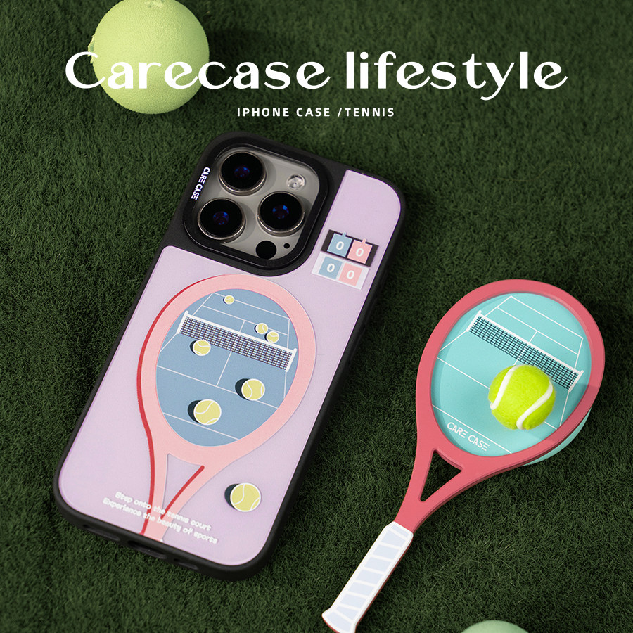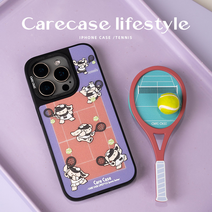 📚 CARECASE 黑框网球兔子/网球球场磁吸手机壳 适用于苹果iPhone 16 15 14 13 Pro Max 原创设计 卡通有趣插画