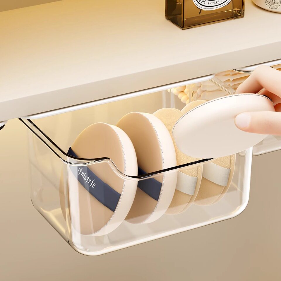 这款收纳盒特别适合浴室柜悬挂空间不足的情况。粉扑等物品放在上面,可以沥干水分,防止潮湿发霉。而且挂起来整洁又美观,简直是浴室的隐形小卫士!👩🏫