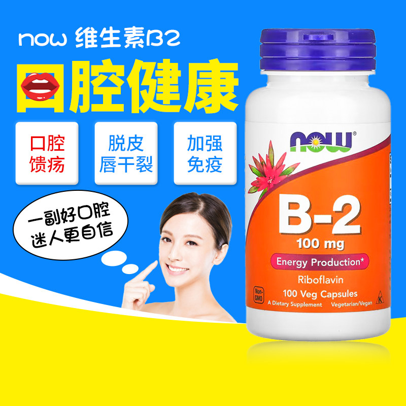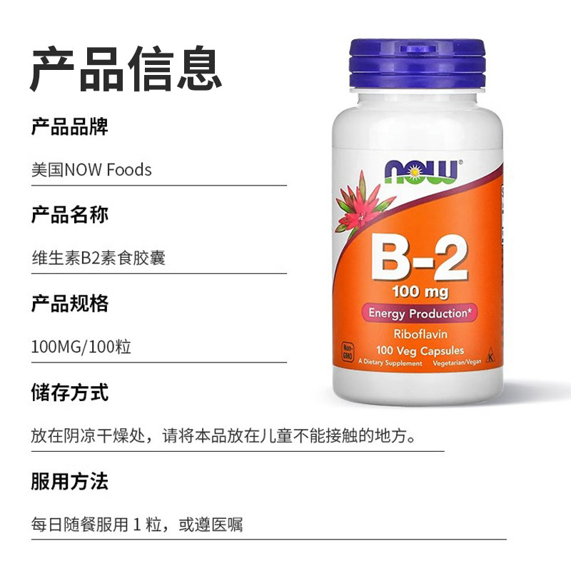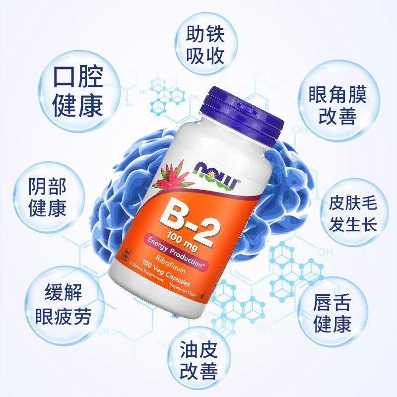 📚 美国now foods诺奥维生素B2核黄素100mg100粒vb2口腔维生素b2片