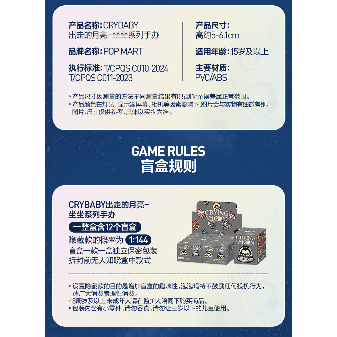 📚 泡泡玛特CRYBABY哭娃出走的月亮坐坐系列手办迷你公仔盲盒摆件萌