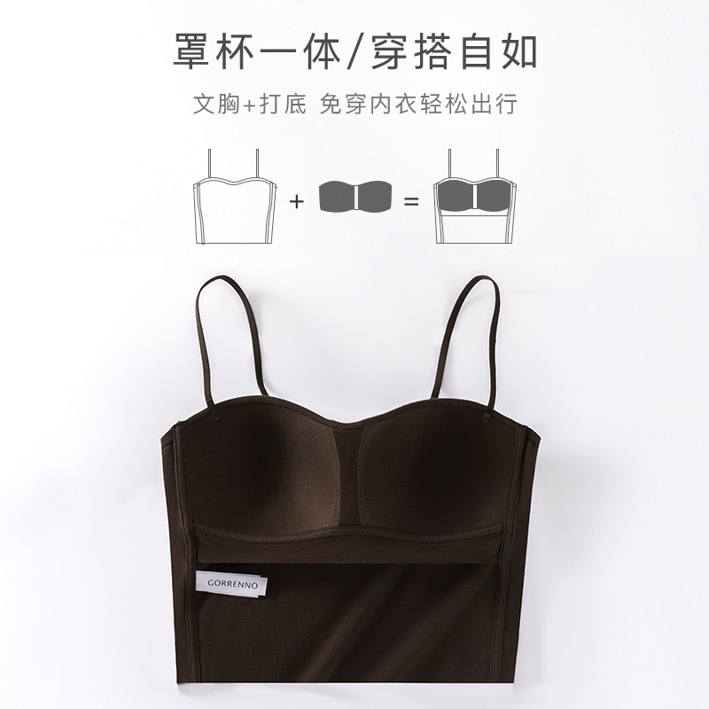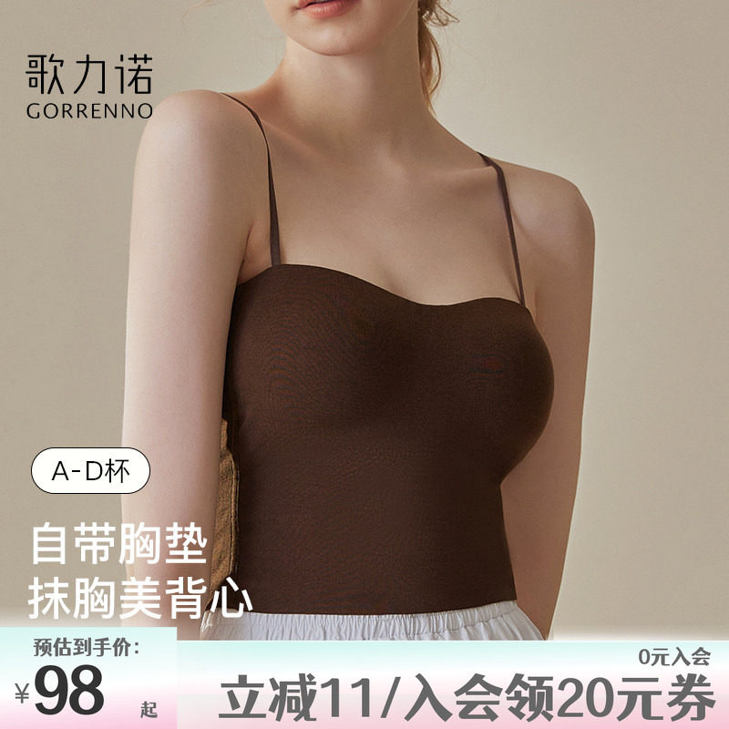 📚 歌力诺小吊带女大胸聚拢棕色内搭美背心式内衣带胸垫一体咖色文胸