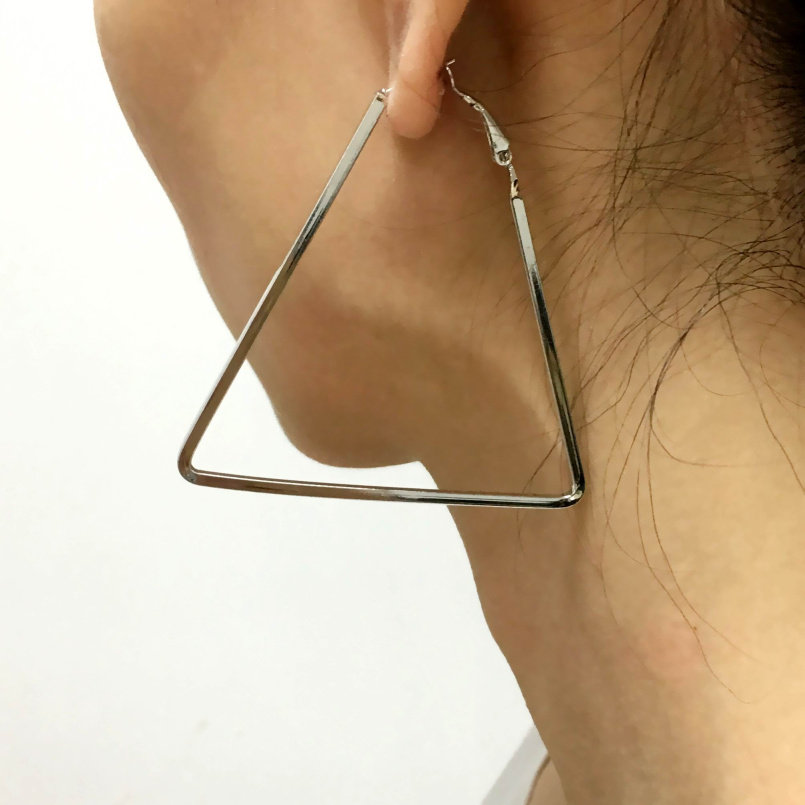 📚 韩版潮流时尚金属三角形耳环 韩国个性夸张气质夜店耳环女
