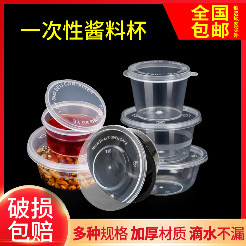 📚 一次性酱料盒调料杯外卖带盖连体小餐盒辣椒油透明圆形打包盒包邮