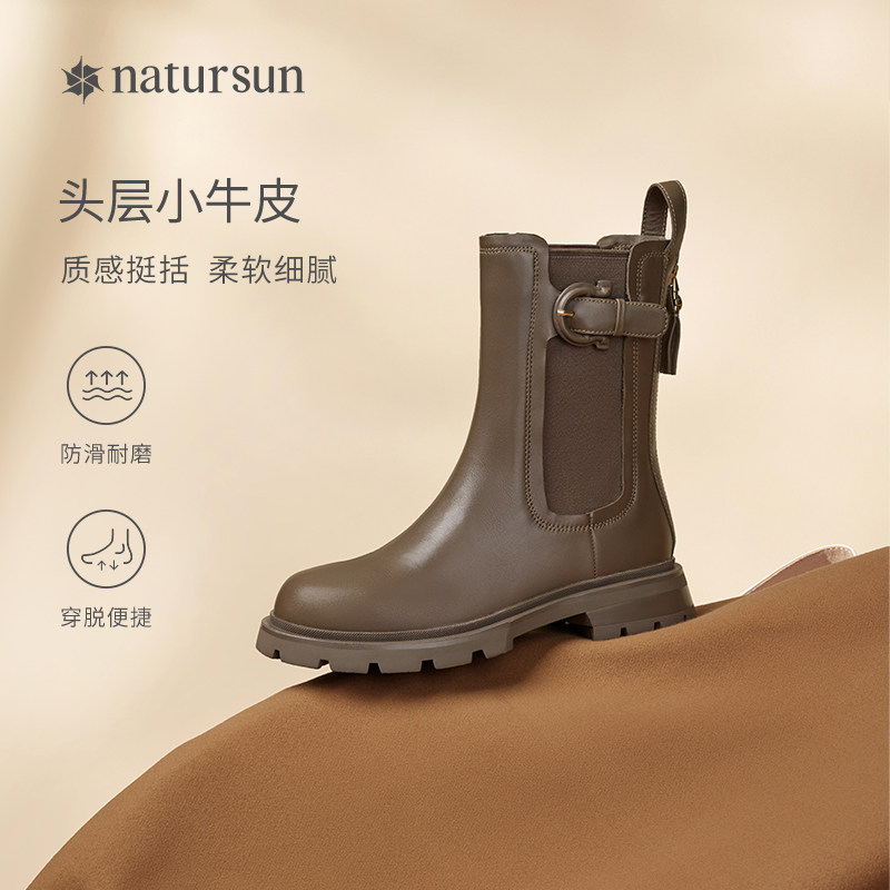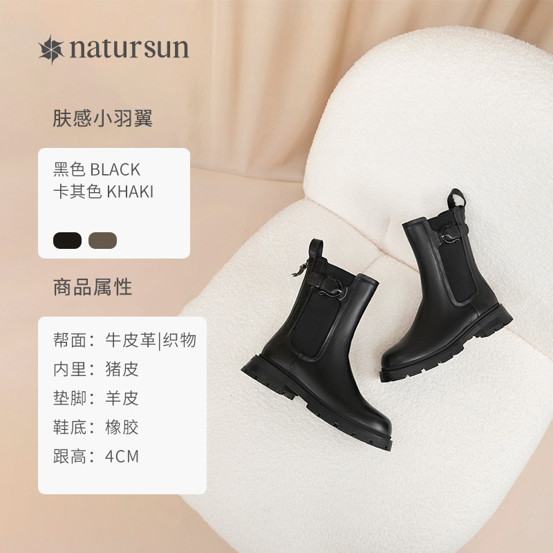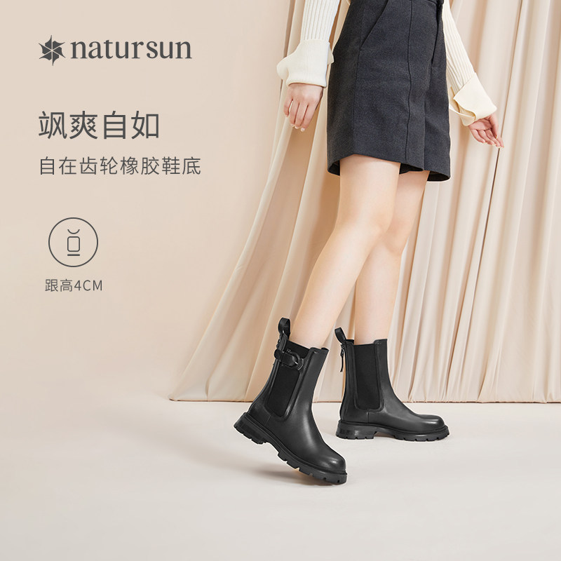 📚 natursun娜冉冬冬季厚底英伦风切尔西靴女黑色烟筒靴瘦瘦靴春季