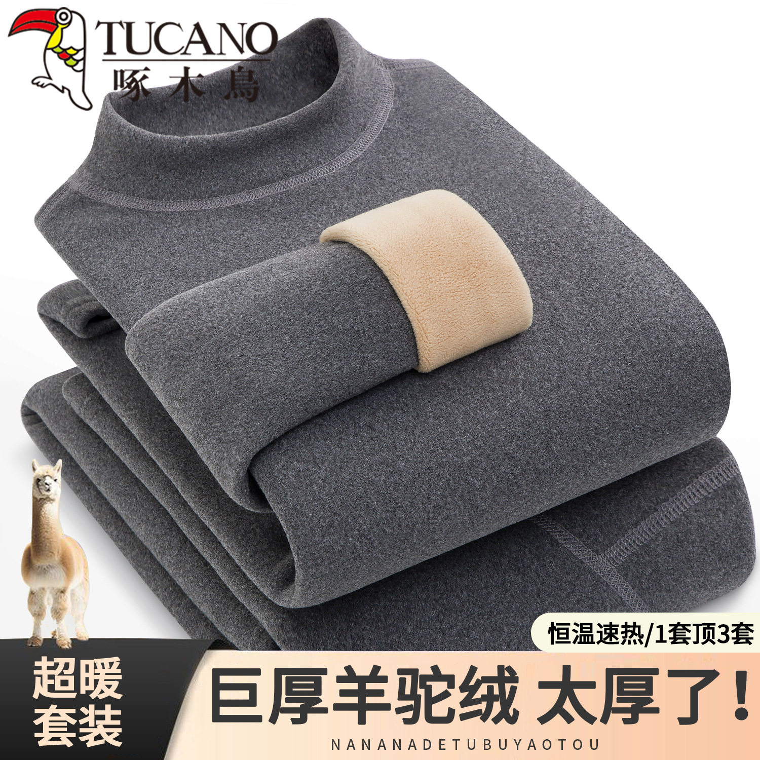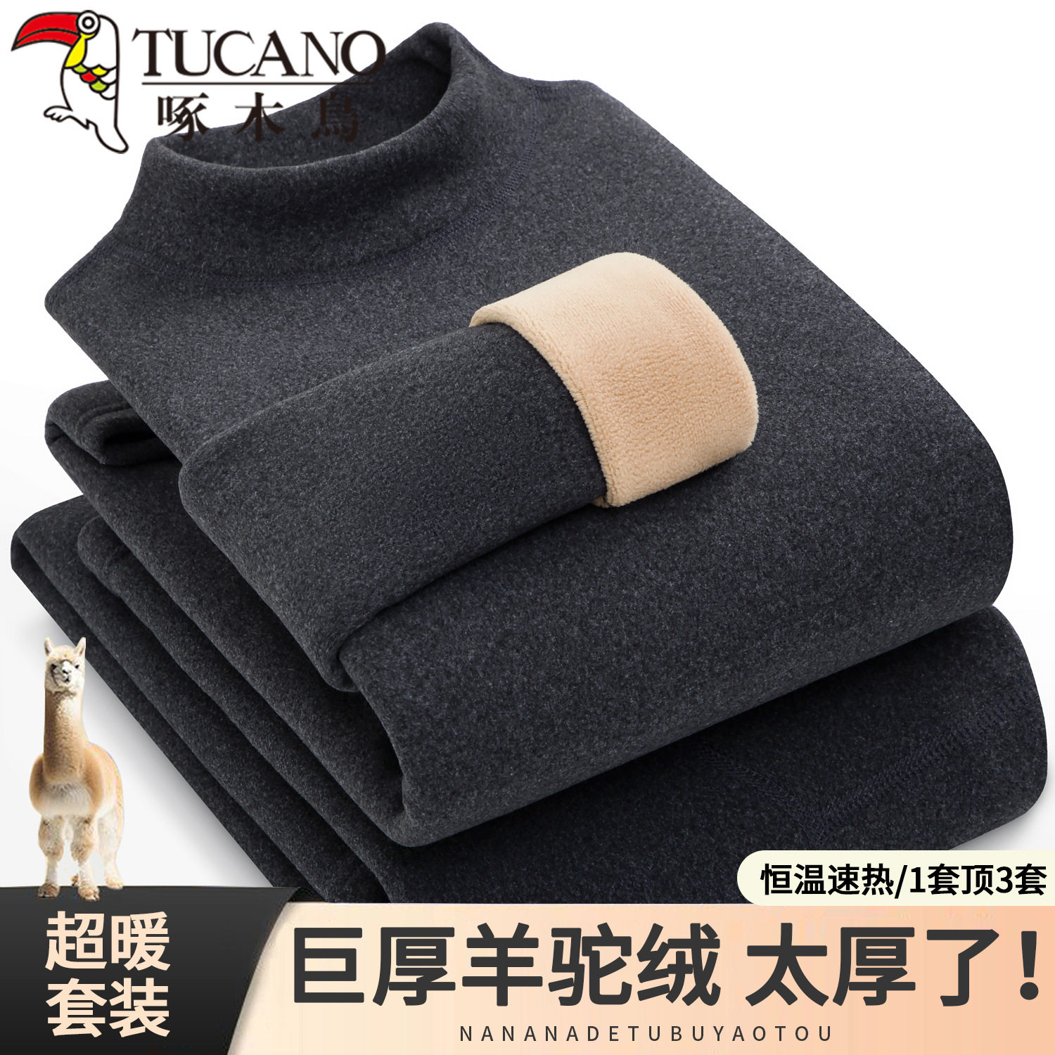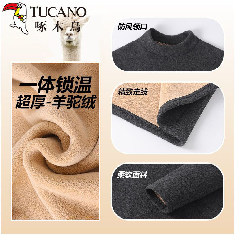 📚 啄木鸟保暖内衣套装男女士加绒加厚中高领羊驼绒发热秋衣秋裤防寒