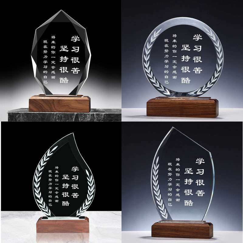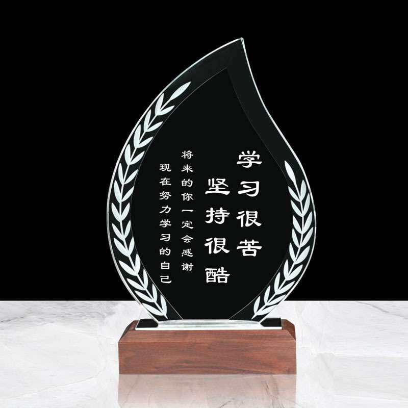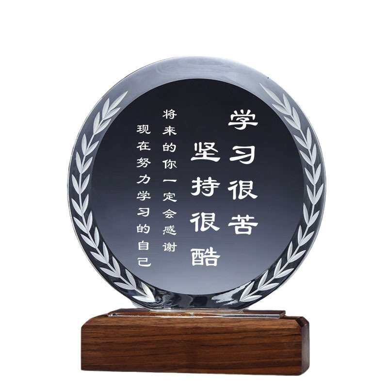 📚 创意励志学生座右铭学习很苦坚持很酷K9水晶刻字实木桌面摆件